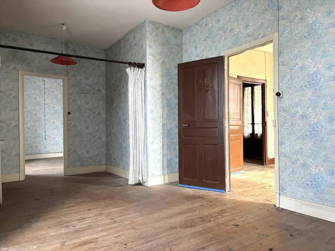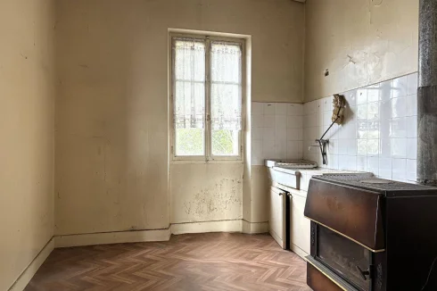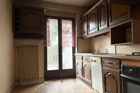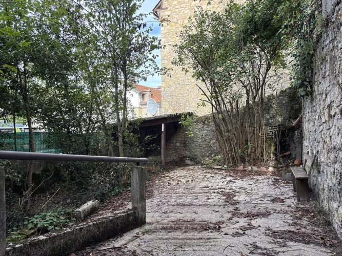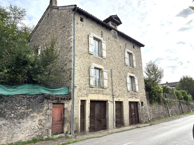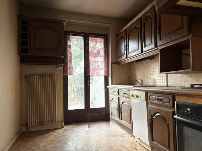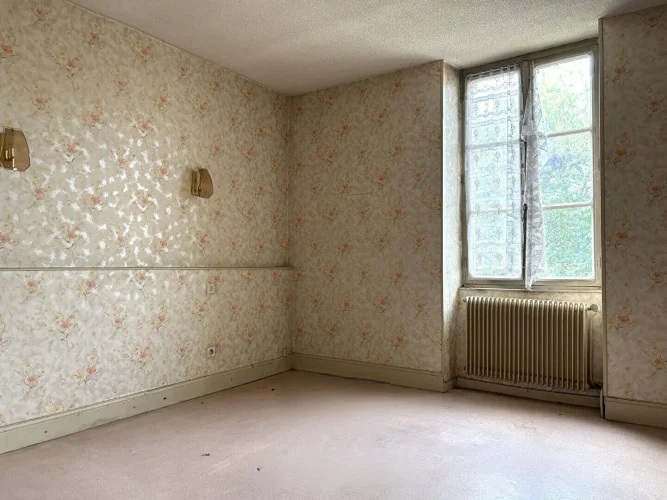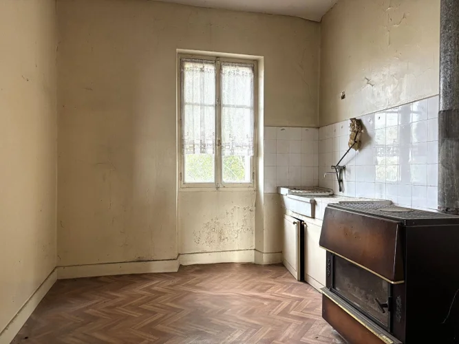 Close to the town centre, stone townhouse with approximately 108 m2 of living space, double garage and adjoining garden. On the ground floor, there are two garages measuring 22 m2 and 24 m2 as well as a cellar/boiler room. On the first floor, there is a hall, a 9.50 m2 kitchen with access to the garden, a 14 m2 living room, a bathroom, two bedrooms of 9 and 14 m2 and a WC.On the second floor, there are three bedrooms of 12 to 16 m2, a 9.40 m2 kitchen and a WC. On the third and top floor, there is a convertible attic. At the rear of the house, there is a garden accessible from the first and second floors, offering the possibility of creating two separate entrances and thus two apartments. Town gas heating with a recent boiler, mains drainage. Work required to bring the property up to safety standards (electricity) and insulation.