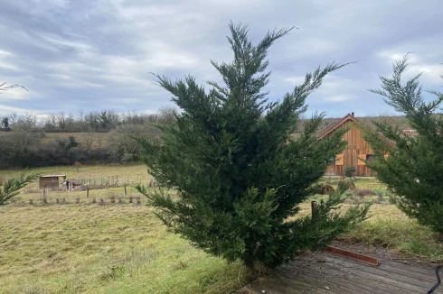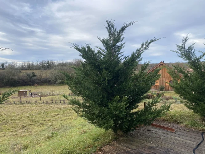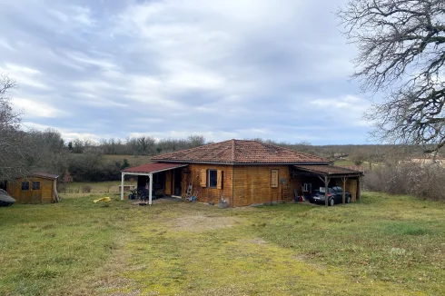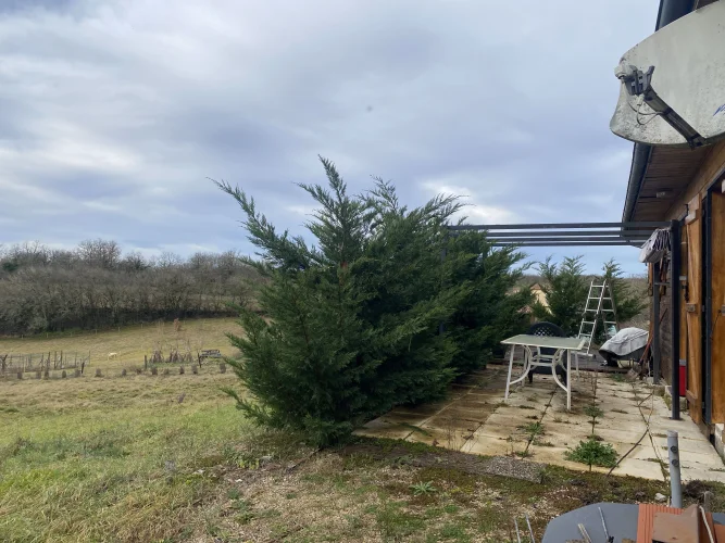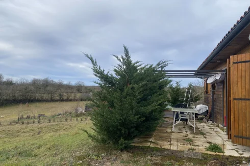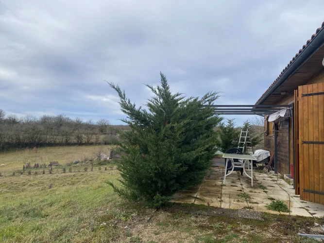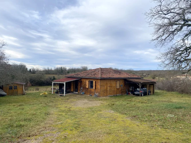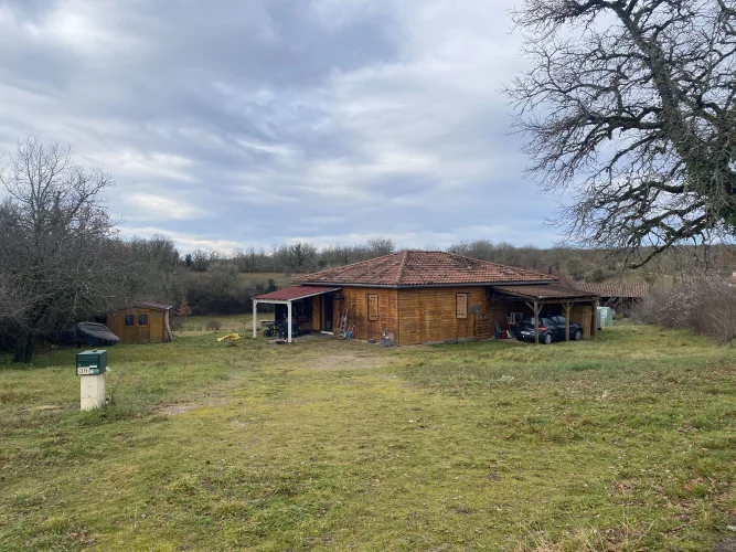 Located on the Causse de Limogne plateau and in the Causses du Quercy Natural Park, discover this charming timber-framed house, situated in a peaceful setting on a 2,000 m2 plot.