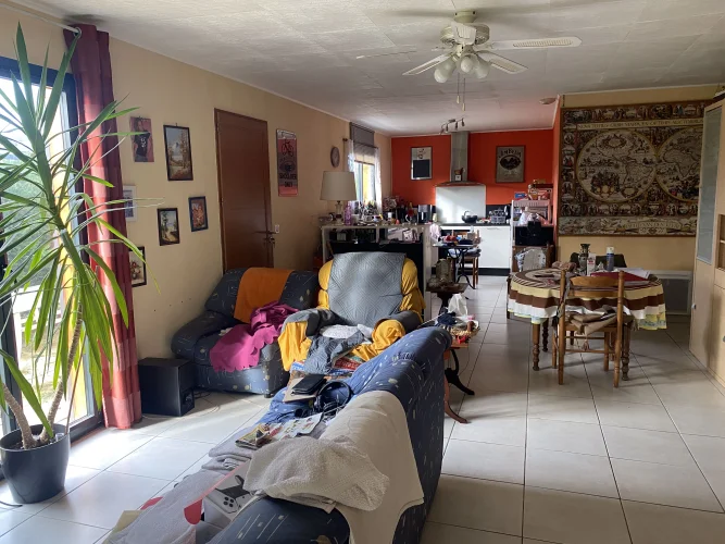 With a living area of 82m2, the house comprises a large living room with open kitchen, 3 bedrooms, a toilet, and a shower room.