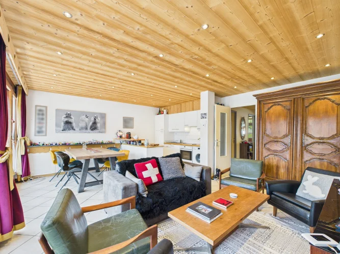 This nicely renovated apartment is in the centre of Les Gets. Sold with a garage and a storage locker it is an ideal and easy to use property for ski or summer holiday!