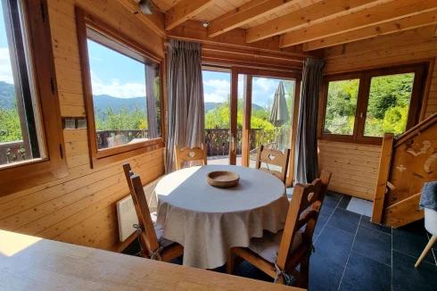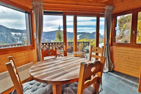 This delightful chalet is one of just ten, each of a slightly different quirky design. Located high above Les Gets and with a huge terrace it has stunning views, and yet the village is within easy reach by car or the free shuttle bus.