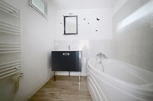 This completely renovated former winemaker's house is located in Maraussan, a charming village near Beziers. It's spacious layout reveals a garage, three bedrooms and three bathrooms (of which one of each on the ground floor), and an office that could also serve as an extra bedroom. The ground floor includes a small patio, and the first floor benefits of a terrace with room for a dining table to enjoy the exterior Mediterranean life.