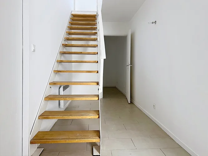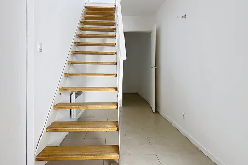 First floor: The wooden staircase brings you to the first floor, which features an open kitchen and a living room with access to a terrace. Furthermore, the en suite bedroom includes a dressing room and a bathroom (with bathtub and washbasin), as well as a separate WC.