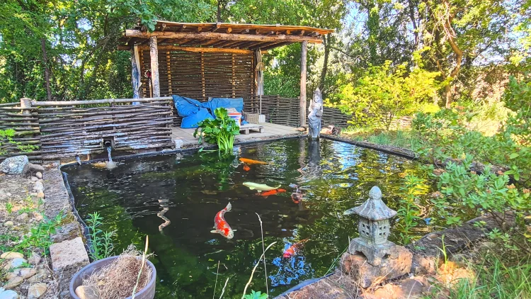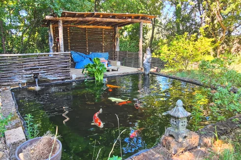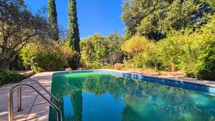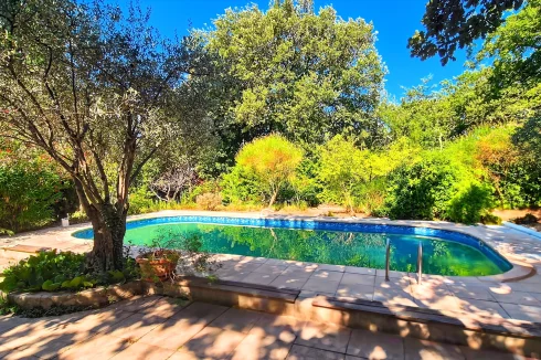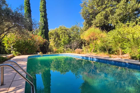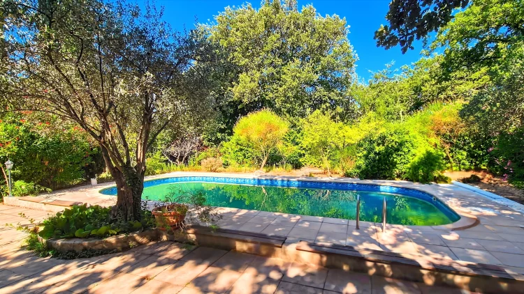 The grounds are 3443m2 in total and are peaceful and green, with a lovely swimming pool and fish pond, and no overlooking neighbouring properties. There is also a garage.