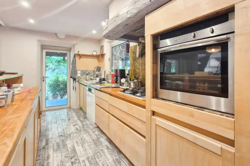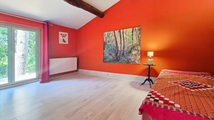 This large house has a lovely spacious living room of 70m2, consisting of an open plan kitchen, dining area and sitting room with cathedral ceiling. There's plenty of storage space with a pantry, cellar space and a laundry room. In the main house are four bedrooms, or which one is a master suite with ensuite bathroom and dressing room. There is a lovely covered terrace looking out over the garden. An added bonus is the 48m2 extra building with bedroom and living room - great for guests or as a holiday let.