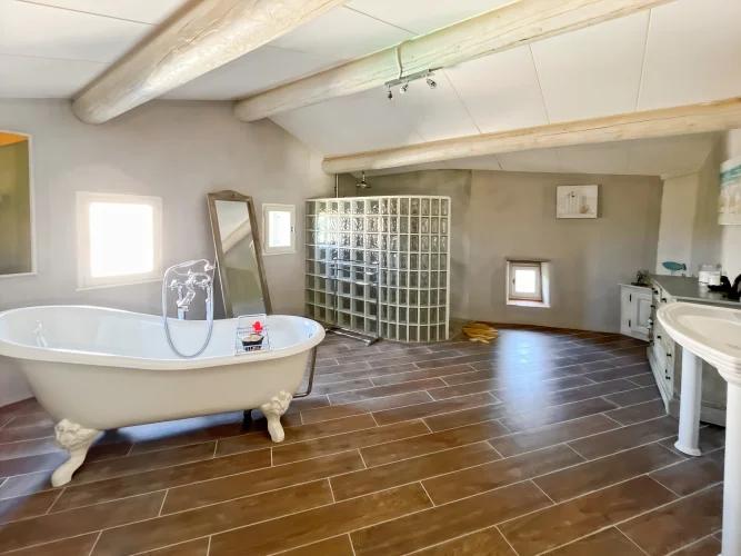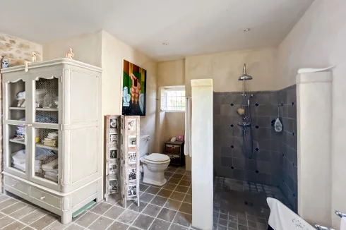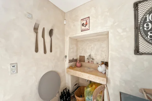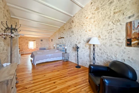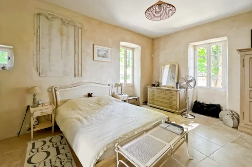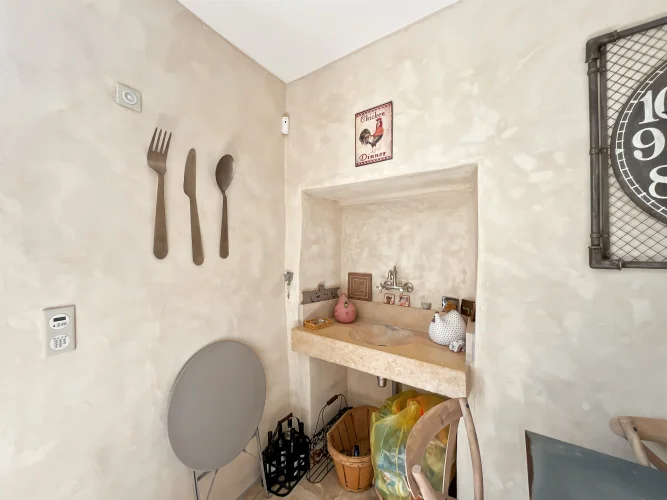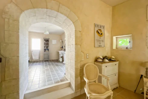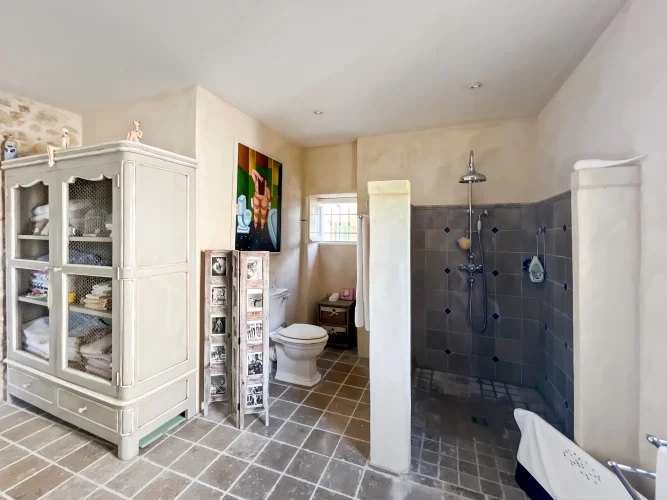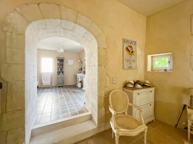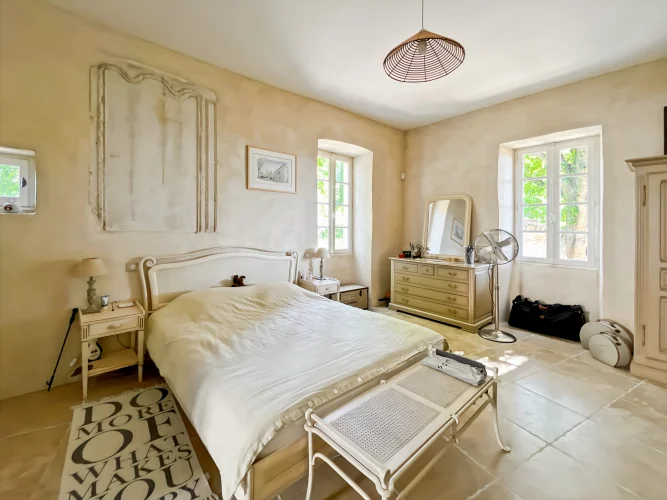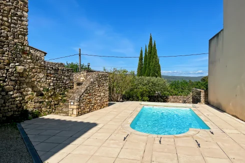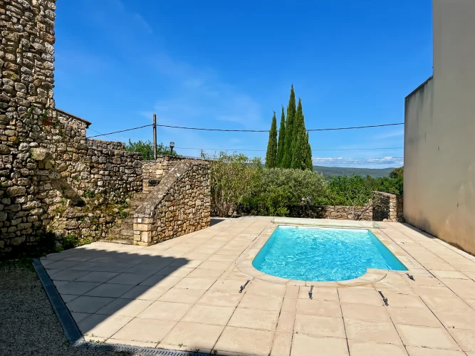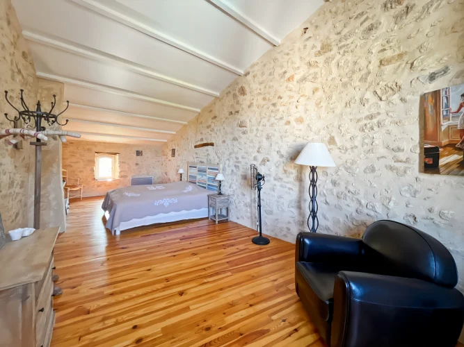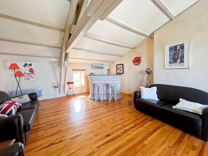 This wonderful property is in a quiet and pretty village environment, In the grounds there are several outbuilings including a barn and a garage. The garden houses a lovely swimming pool. The entire property has been completely renovated. In the house there is a beautiful living room with fireplace and a custom-built kitchen, both opening onto a balcony to the east and a beautiful covered terrace to the west, perfect for enjoying the sunsets. There is also a very spacious master bedroom suite. The upper floor has two large bedrooms, another living room that could be used as a fourth bedroom, and a beautiful bathroom. The house has been carefully renovated and benefits from electric underfloor heating, solar panels for hot water, a fireplace, a water softener and connection to mains drainage.