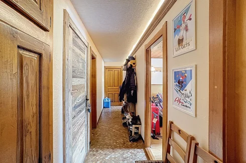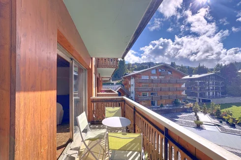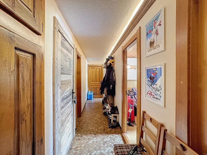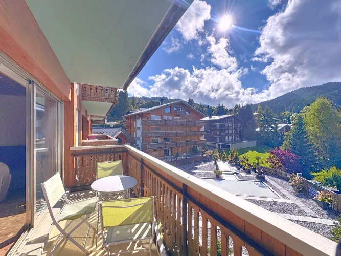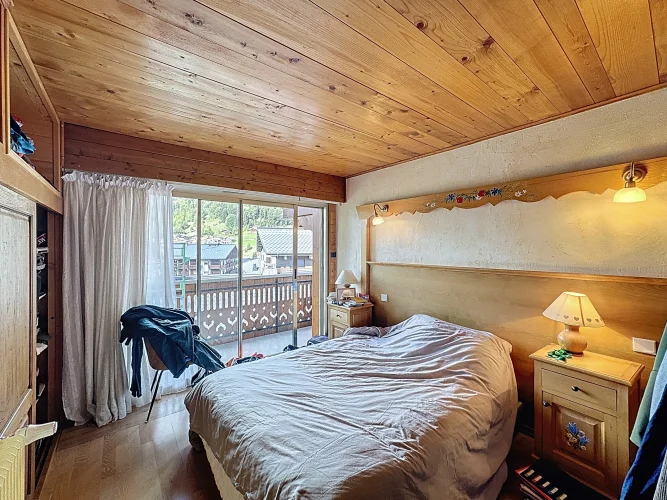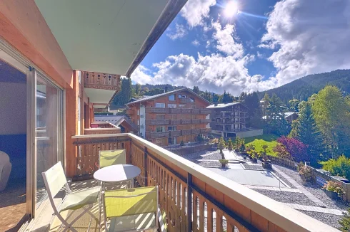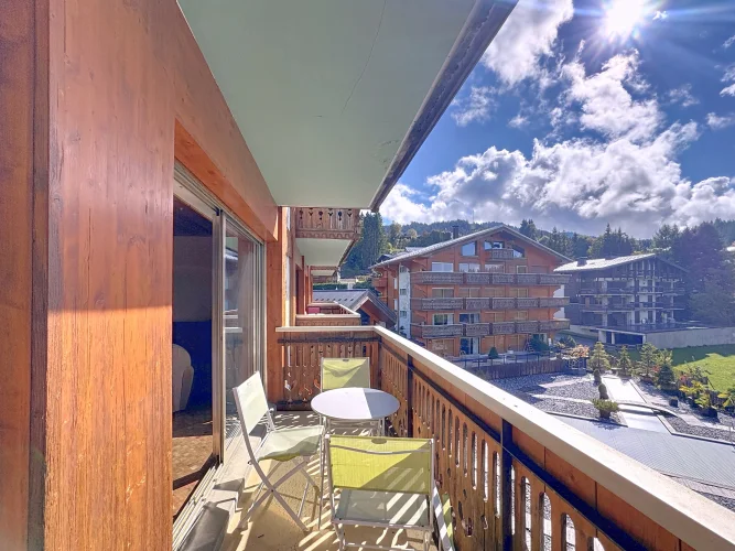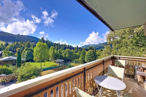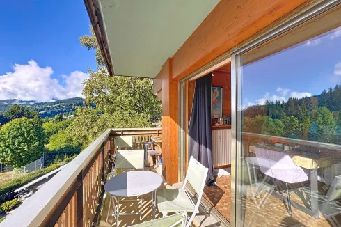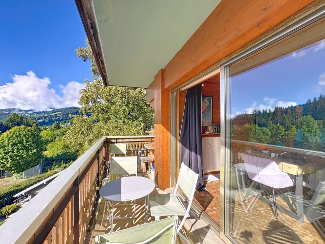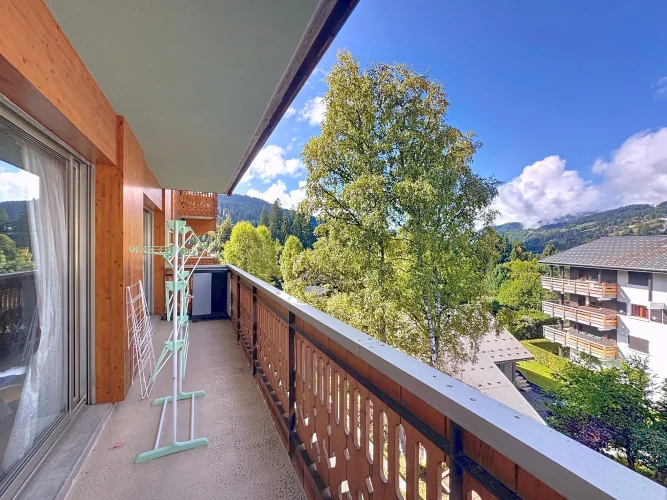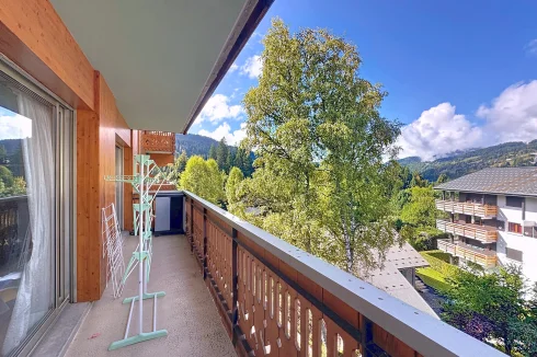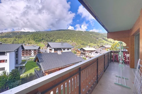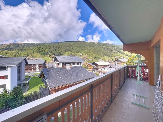 This spacious apartment is on the seocnd floor of a block close to Les Gets village center and the ski slopes. It has a delightful, bright living room with access to a west-facing balcony, two bedrooms opening with a northeast facing balcony, a bathroom and a guest toilet. In addition there is a ski locker and outdoor parking space. The apartment benefits from a beautiful panoramic and unobstructed view.