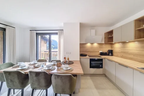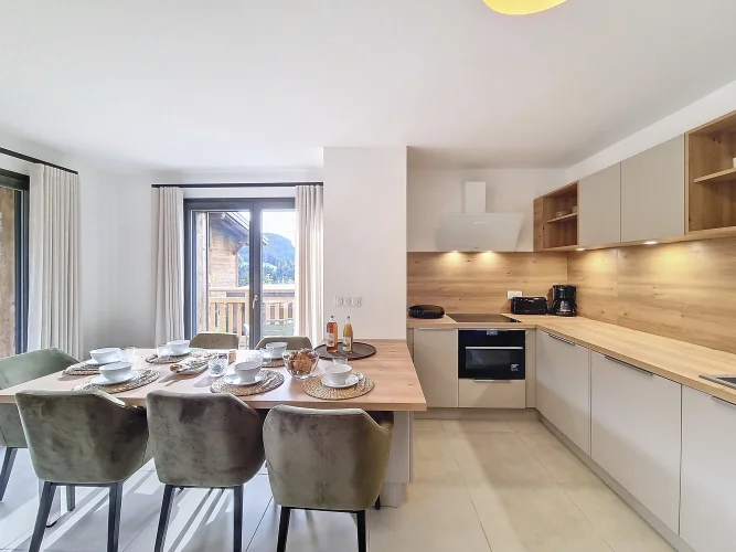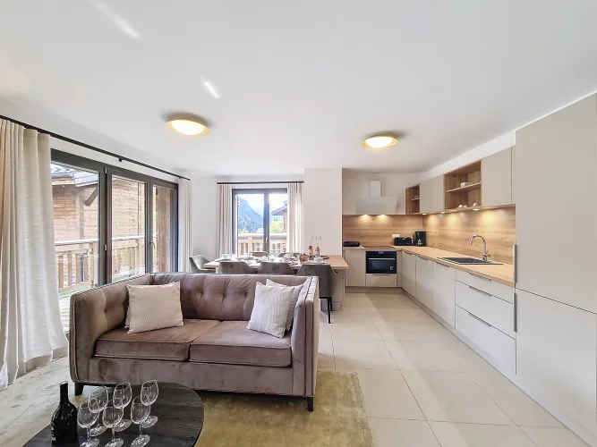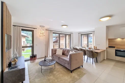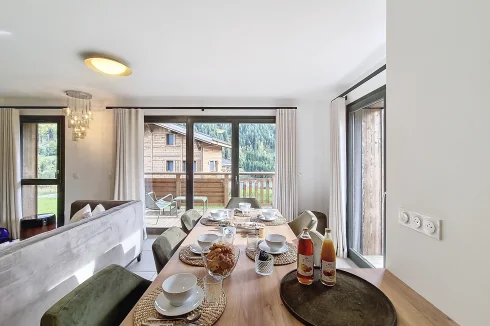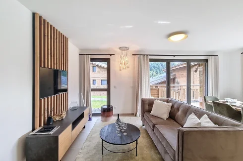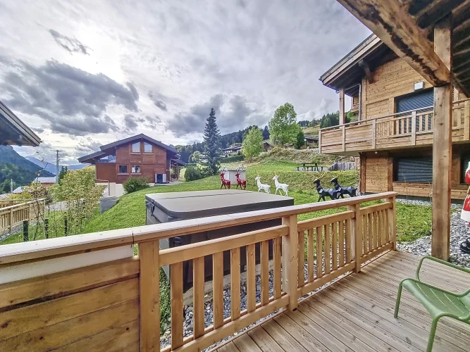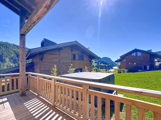 This charming property, with its private garden space, is in a quiet spot on the South facing slopes of the Les Gets valley.