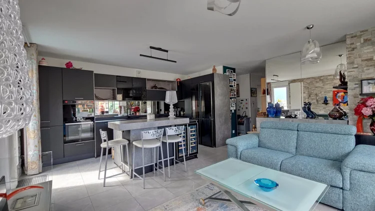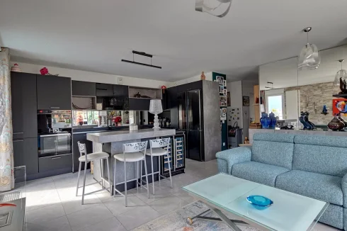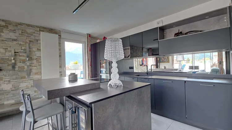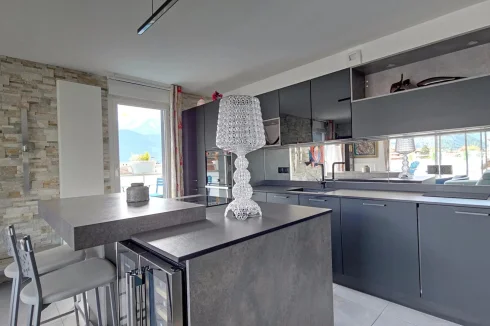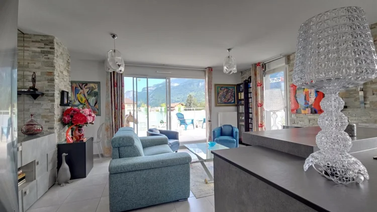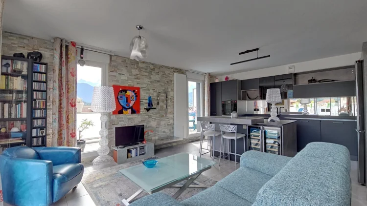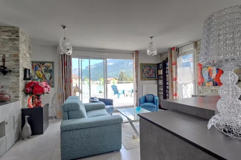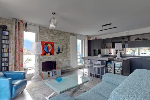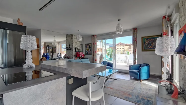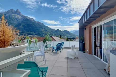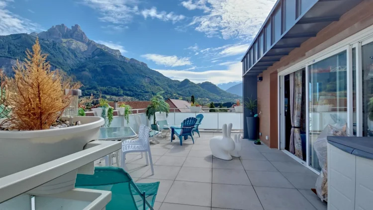 This stunning two-bedroom penthouse is ideally located in the heart of the Megeve - Saint-Gervais - Chamonix triangle, in the centre of Sallanches. The building was constructed in 2023 and the apartment has 70 m2 of living space and 60 m2 of terraces. Occupying the third and top floor (with lift access), the triple-aspect apartment offers exceptional natural light throughout the day, as well as breathtaking views of Mont Blanc and the surrounding mountains. Inside there is an entrance hall with large built-in cupboard, leading to the sunny living room with fitted kitchen, which in turn opens onto a 30 m2 terrace. In addition there are two double bedrooms, a spacious bathroom, and a guest separate toilet. The property is sold with a double closed garage in the basement.