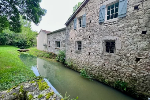 Ref. 4396 Ideally located between Agen and Villeneuve sur Lot, beautiful stone property complex of approximately 434 sqm on a plot of land with a stream of approximately 1.4 hectares. Lovers of tranquility and old stones, come and visit this old mill, modernized by a recent extension. You will particularly like: - the calm and the total absence of vis-à-vis - the comfort offered by the new living rooms and other bedrooms, office, bathroom in the extension created. - the charm of an old mill offering the soothing view of a small stream - the tremendous potential offered by the total number of rooms available: ideal for a host family project, guest rooms or rental of gites, or simply the privileged welcome of family and friends.