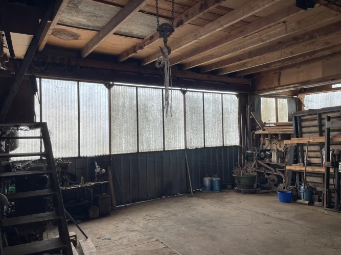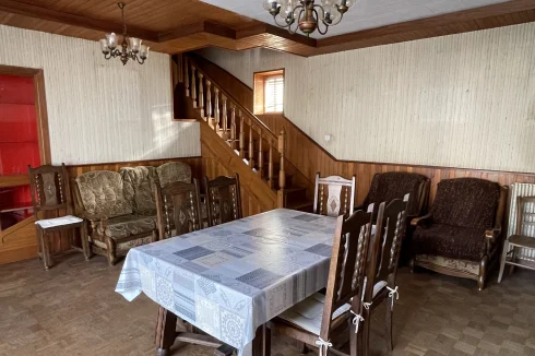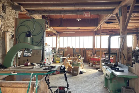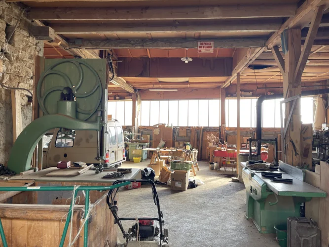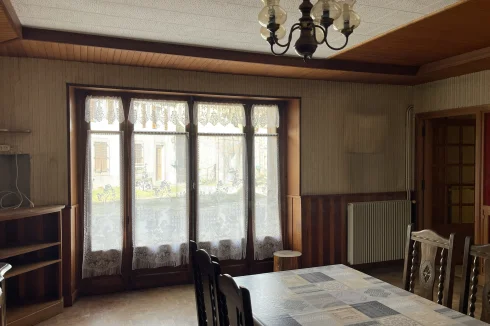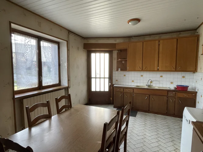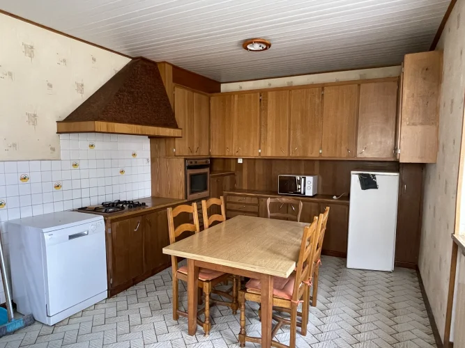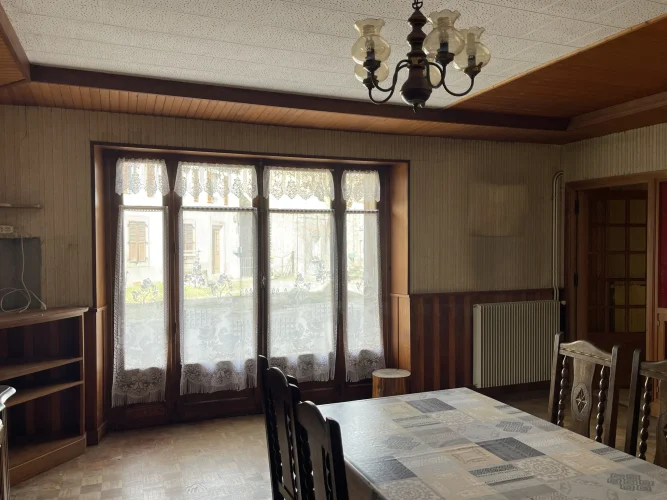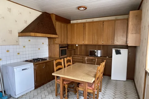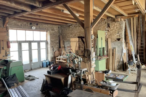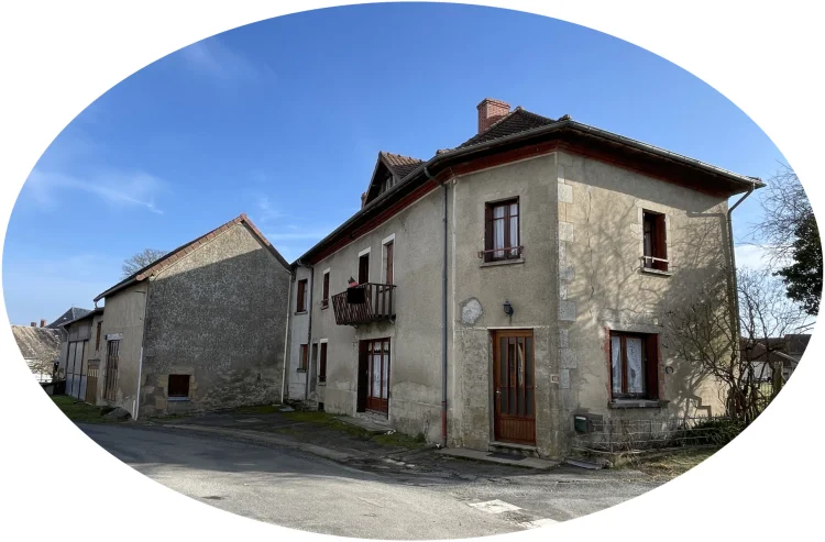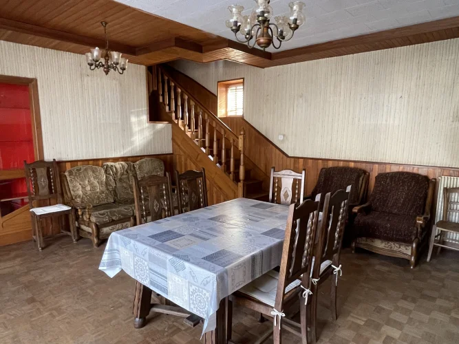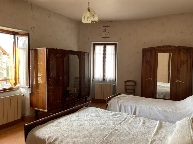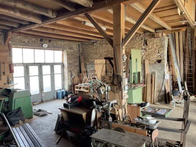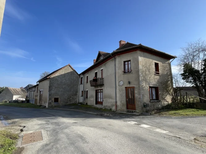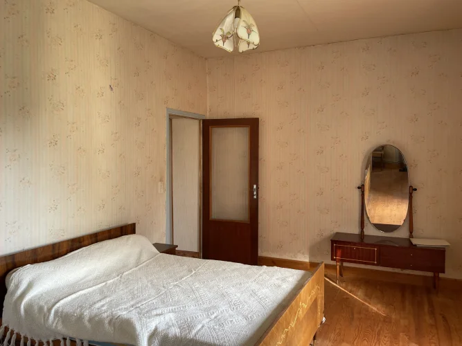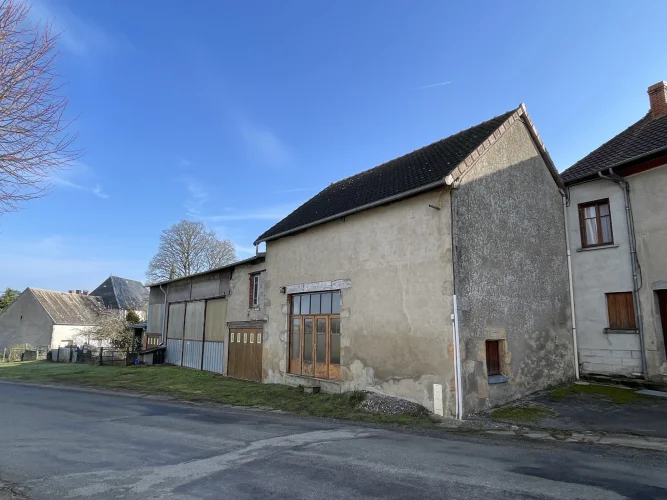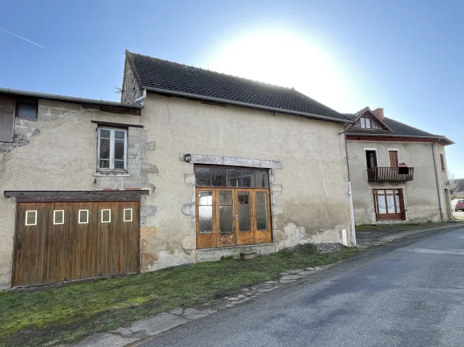 Auv 1128: Large house, many outbuildings, garden, tranquil, 1400m2Are you looking for the combination of a very spacious residential house, a huge workshop, and a garden? Then, this could be ideal. The property has multiple entrances and can thus also be converted into several residential units. Many possibilities!The built-up area is 430m2, and the garden 970m2. The garden is located entirely on the left.The entire property is peacefully situated in a small village without shops, 7 km from Pionsat.The residential house itself has a good structure but needs modernization. The electrical installation works but is old and will therefore need to be redone. There was central heating with oil, so all radiators are still present, but the defective boiler has been removed.Through the front door all the way to the right, you enter the spacious kitchen (20m2, height 2m65) with tiled floor, wooden kitchen cabinets, and like in the entire house, oak single glazed windows and a door with single glass. Plenty of natural light.Next to the kitchen, there is a spacious living room (29m2) with a 4-fold window-door combination at the front, oak parquet flooring, and at the back, the beautiful oak staircase leading to the upper floor.Additionally, there is a room of 15m2 with a front door, window, built-in closets.Further on, there is a utility room (16m2) with a tiled floor, connections for the central heating, a separate toilet, and a door with an indoor entrance to the workshops.Cellar.On the first floor, there is a spacious hallway (10m2, height 2m80) with pine wood floors in good condition. There is a bathroom (13m2) with a shower, bathtub, vanity unit, sink, bidet, and a separate toilet, and a large window overlooking the church over the roof of the workshop.The bedrooms all have windows at the front of the house, the 2 smallest rooms (9.5 and 11.5m2) are connected by a door, and one of them gives access to the bathroom and a large attic (45m2) above a part of the workshop. Further down the hallway, there are the larger rooms, one of 18m2 with a large window and double glass doors leading to a small balcony, and a door to the attic above the original residential house (ridge height 2m80).On the gable end, there is the largest room of 20m2 above the kitchen, with windows on 2 sides.The former workshops have a total cadastral area of an impressive 300m2. The interior dimensions are approximately 22m by 15m. On the street side, there are several entrances with doors and gates. There is also plenty of light coming in from the back, with translucent windows. The land at the back does not belong to the property. The roof of the workshop is made of asbestos sheets.The village has no mains sewage system, so a septic tank installation will need to be installed, adapted to the project.