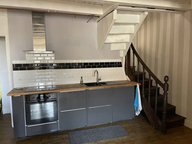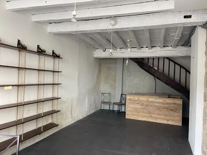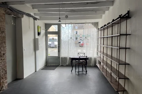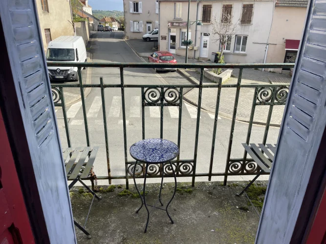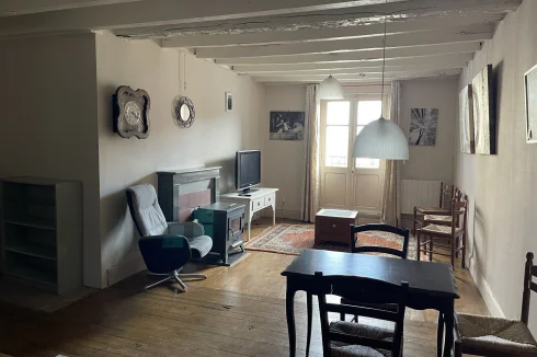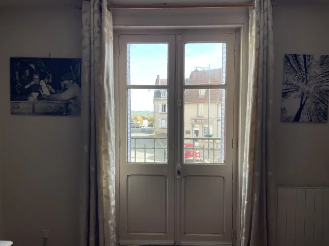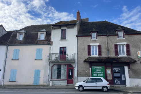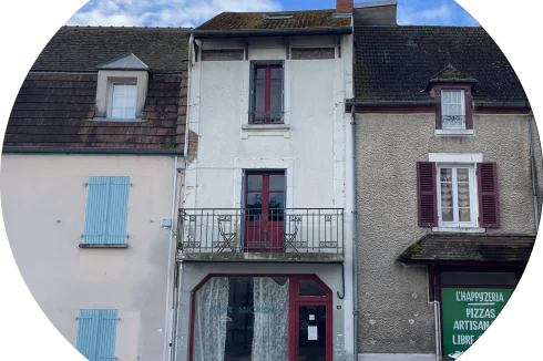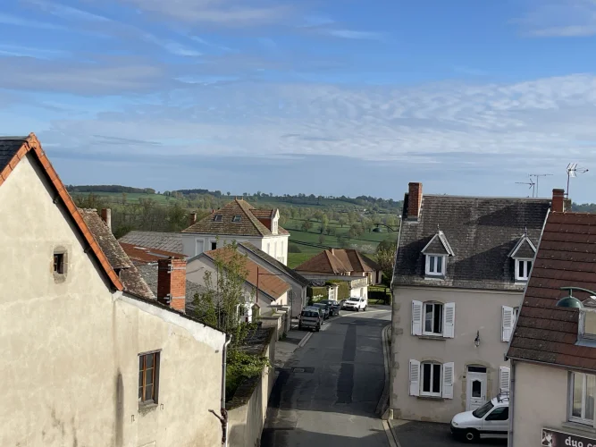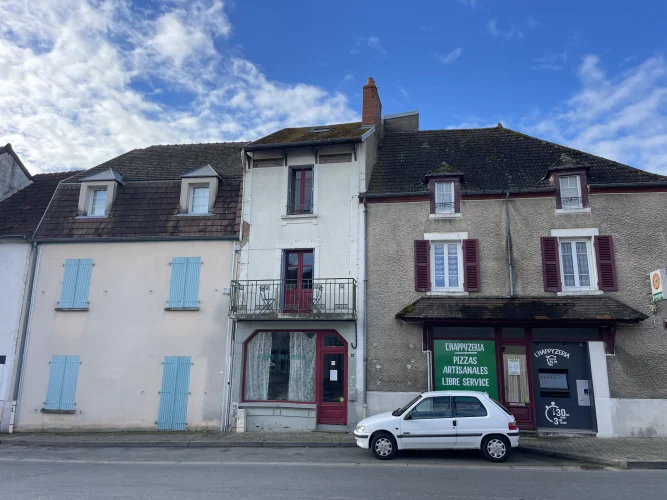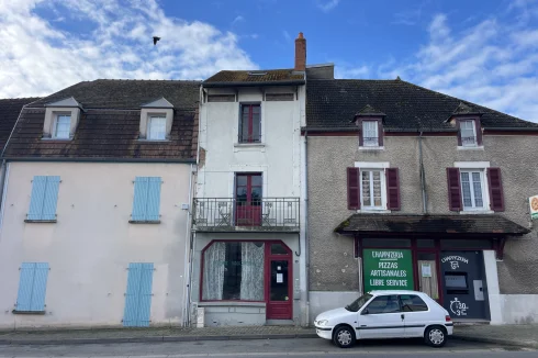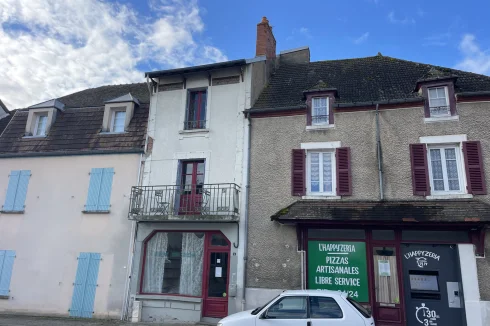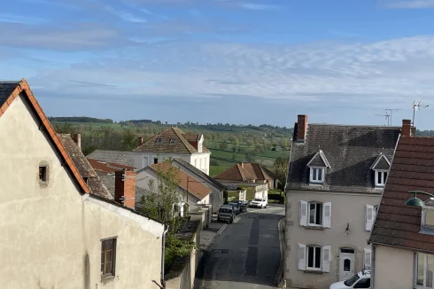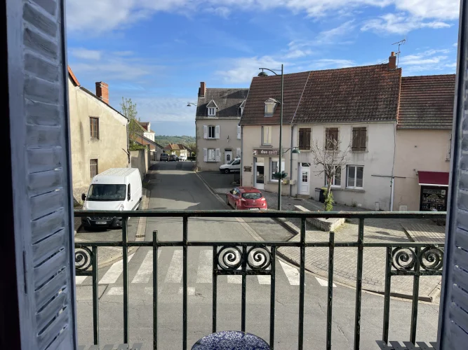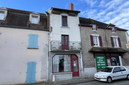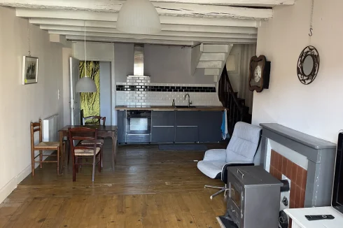 Auv 1141: Habitable village house of 3x30m2, attic, cellarThis house was originally downstairs a library, a shop, etc. and upstairs an apartment. Of course, the whole can also be used as a spacious house.Each floor has a little over 30m2 and the attic is completely insulated, with an additional bedroom of 10m2 of standing height and a much larger floor area.The interior layout and electrical installation have been renovated in the past 8 years, the windows are still original with single glazing.The house is actually very well laid out.On the ground floor, there is a large room of 30m2 with exposed beam ceiling, at the back the stairs leading to the cellar under the entire building, and there is also a separate toilet with suspended toilet and sink to comply with a shop.On the first floor, there is a large kitchen-living room with a kitchen block, wood stove, and electric heating. Double glass doors give access to a balcony large enough to sit comfortably. Since there is a street in front and no houses, the view is spacious and one can even see the green landscape of the region while being in the middle of the village. Pleasant!The second floor has a hall (5.3m2) that gives access to the bedroom (15m2, 2m65 high) with a large window at the front, fireplace, and electric heating. The spacious and completely renovated bathroom (10m2) with walk-in shower, vanity unit with over-counter basin, a suspended toilet, and bidet is separately accessible via the hall.In this hall, there is also the beautiful wooden staircase leading to the furnished attic with 2 Velux windows.