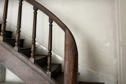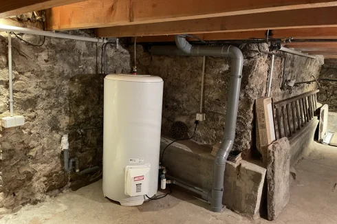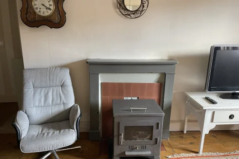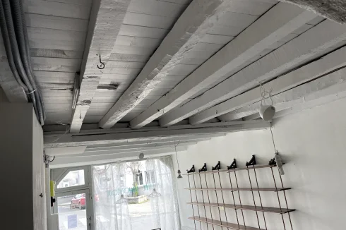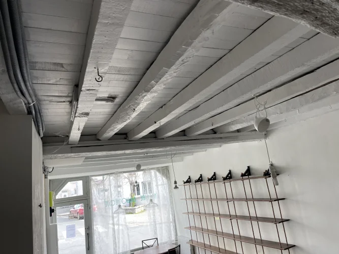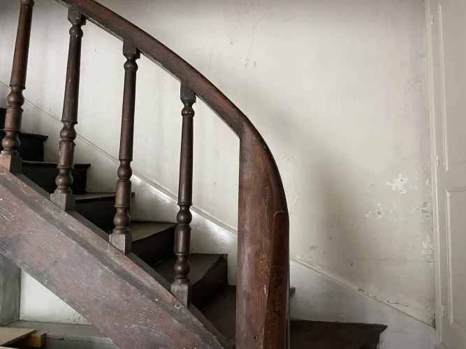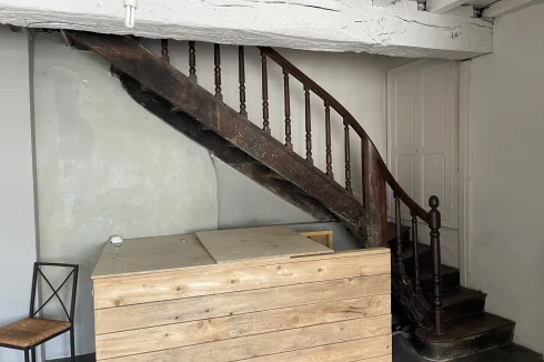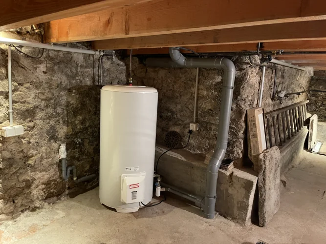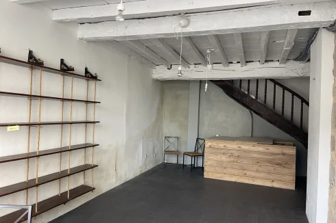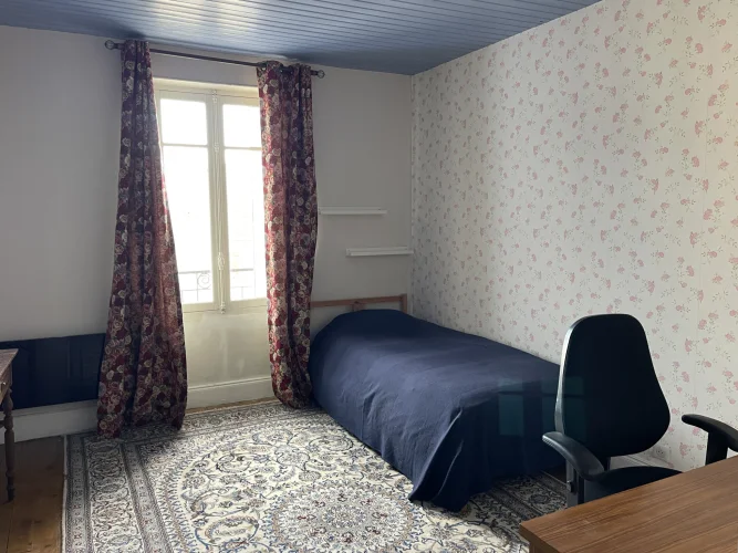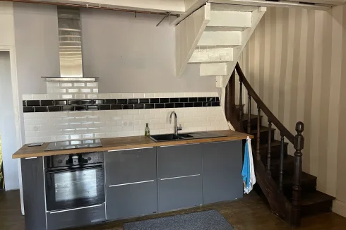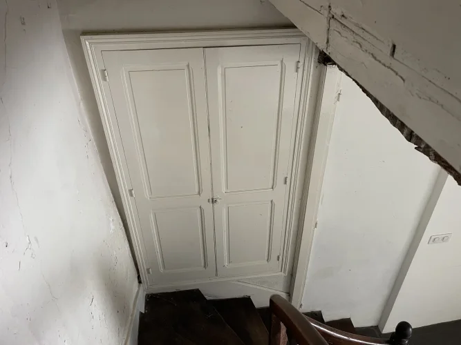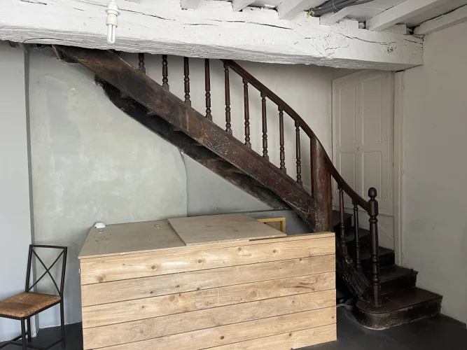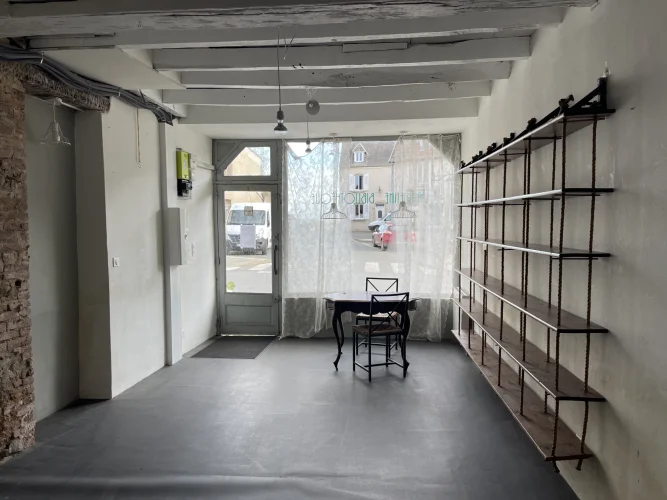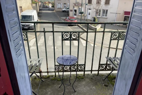 Auv 1141: Habitable village house of 3x30m2, attic, cellarThis house was originally downstairs a library, a shop, etc. and upstairs an apartment. Of course, the whole can also be used as a spacious house.Each floor has a little over 30m2 and the attic is completely insulated, with an additional bedroom of 10m2 of standing height and a much larger floor area.The interior layout and electrical installation have been renovated in the past 8 years, the windows are still original with single glazing.The house is actually very well laid out.On the ground floor, there is a large room of 30m2 with exposed beam ceiling, at the back the stairs leading to the cellar under the entire building, and there is also a separate toilet with suspended toilet and sink to comply with a shop.On the first floor, there is a large kitchen-living room with a kitchen block, wood stove, and electric heating. Double glass doors give access to a balcony large enough to sit comfortably. Since there is a street in front and no houses, the view is spacious and one can even see the green landscape of the region while being in the middle of the village. Pleasant!The second floor has a hall (5.3m2) that gives access to the bedroom (15m2, 2m65 high) with a large window at the front, fireplace, and electric heating. The spacious and completely renovated bathroom (10m2) with walk-in shower, vanity unit with over-counter basin, a suspended toilet, and bidet is separately accessible via the hall.In this hall, there is also the beautiful wooden staircase leading to the furnished attic with 2 Velux windows.