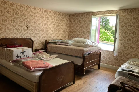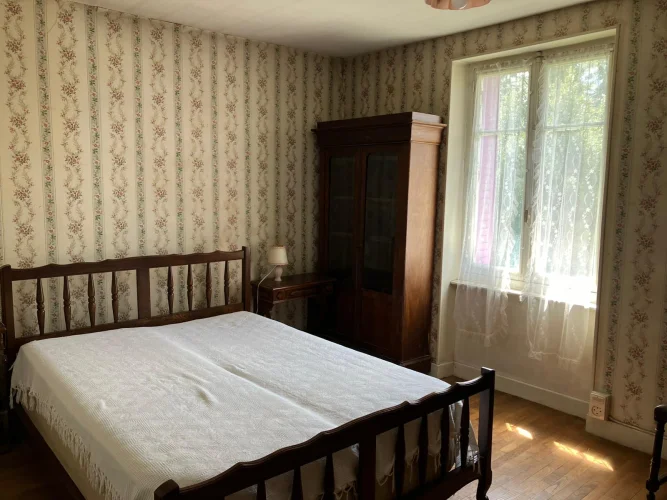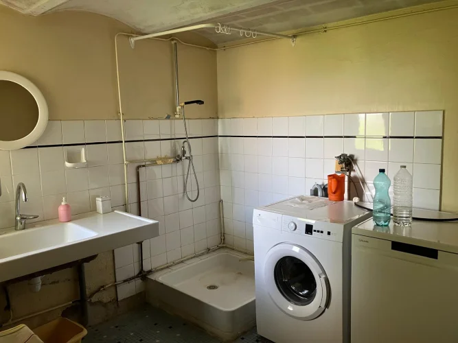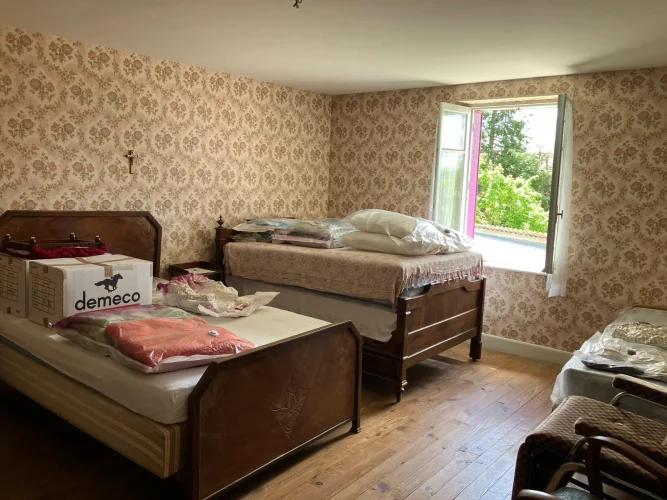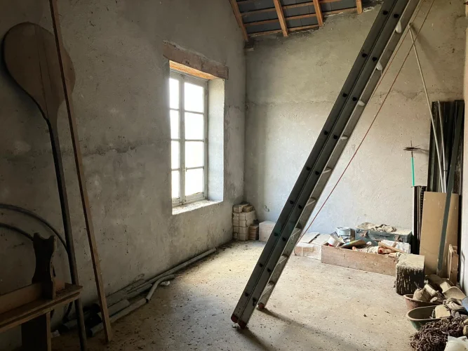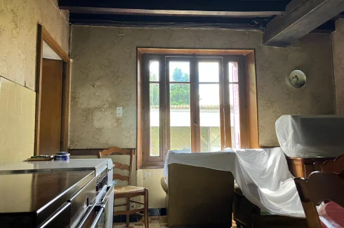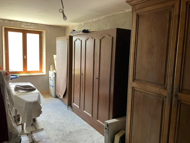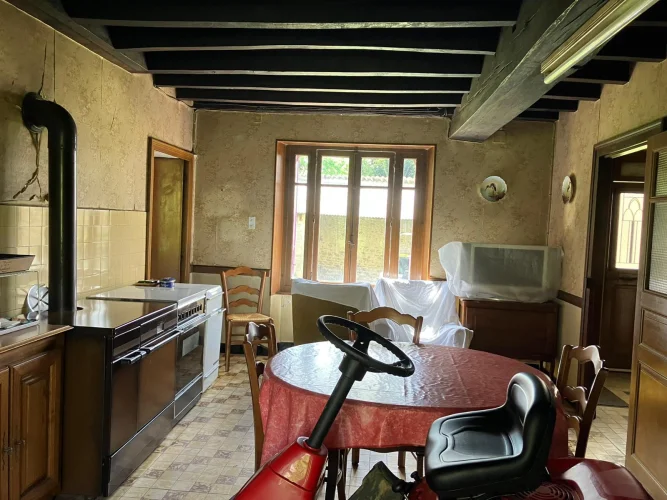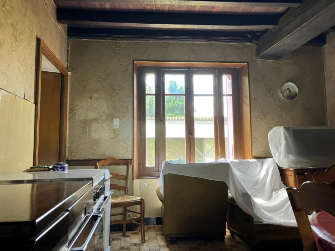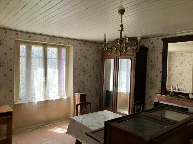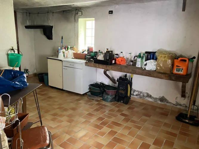 Auv 1170: Longère in a hamlet on 1200m2, quiet, to renovateThe total ground area of the main building + the rear extension is 180m2. The formal habitable surface is 104m2, but some rooms in the 'house' part are not included in this calculation, such as a 4th bedroom, a large utility room with a separate toilet, and an attic room with a new roof. On the left, there is a former barn with plenty of additional potential.The habitable spaces, heated with wood stoves, are:Ground floor:Entrance: 4.3m2Living room: 21.5m2Kitchen: 23m2Bathroom: 6.5m2Utility room: not listed as it is not heatedFirst floor:Hallway and landing: 8m2Bedrooms: 22m2, 12.5m2, and 6m2, plus one not listedThe barn has concrete floors and could also be converted into living space.The septic tank needs to be fully installed, as does the electricity which is outdated, along with double glazing, insulation, etc., but the general structure and intermediate floors are in good condition.There are also 2 small outbuildings and a beautiful well. Nice vaulted cellar with water spring. Land surrounds the house on three sides.The lane is very small and local, with no real through traffic.