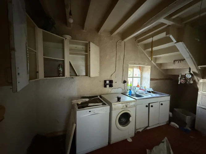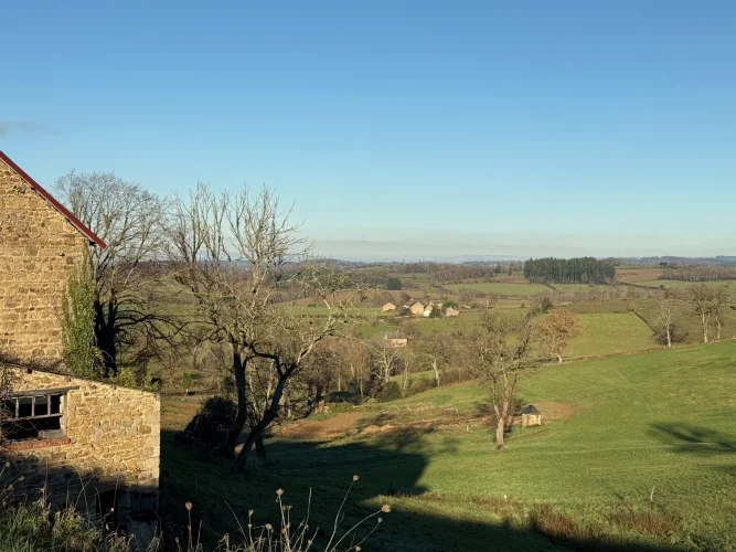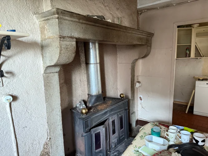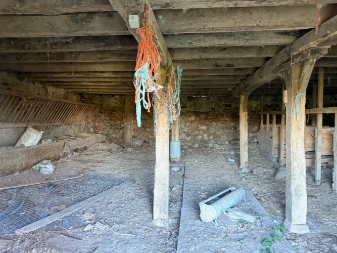 Auv 1171: Renovation Project: House, Barn, Hangar, Outbuildings, 1400m2This property is quietly located on both sides of a small lane. It includes a large barn with an internal size of 16m x 8m, a height of 7m from the floor to the roof ridge, and a series of stables underneath with entrances on the side offering beautiful views. The roof is covered with asbestos slates.Additionally, there is a large open wooden hangar of 130m2 with metal poles and a sheet metal roof, as well as a small stone outbuilding of 60m2. Behind the house, slightly lower down, there is another older outbuilding of 60m2. The house itself has an external size of 65m2, with internal dimensions of 9.5m x 6m.Under the house are cellars accessible via a side entrance. The ground floor consists of an entrance hall (4.5m2), a dining room (14.5m2), a kitchen (7m2), and a living room (25m2, with a 2.5m ceiling height). The first floor features a hallway (10m2), two bedrooms (17m2 and 12m2, with a 2.4m ceiling height), and two small rooms of 8m2 and 7m2, separated by partitions that can be reconfigured.The structure of the house is in good condition, the roof is average, and the interior needs complete renovation.A large project with many buildings, on 1400m2 of land with stunning rear views, located at the end of a small hamlet.