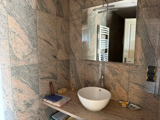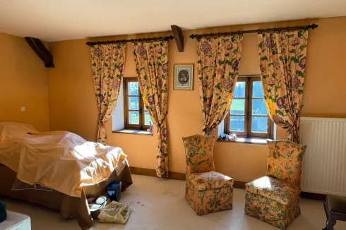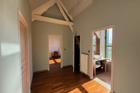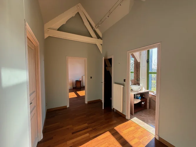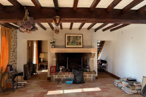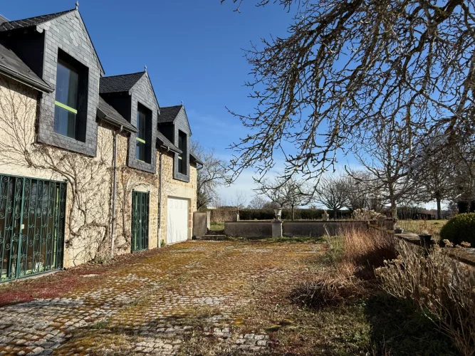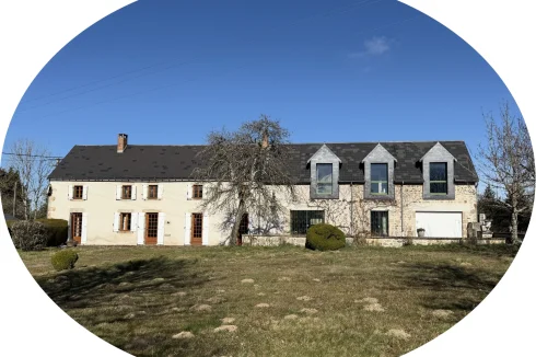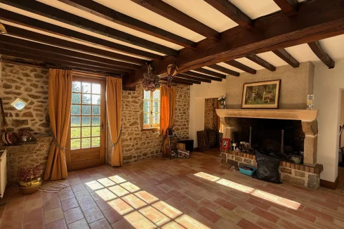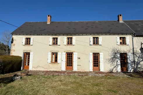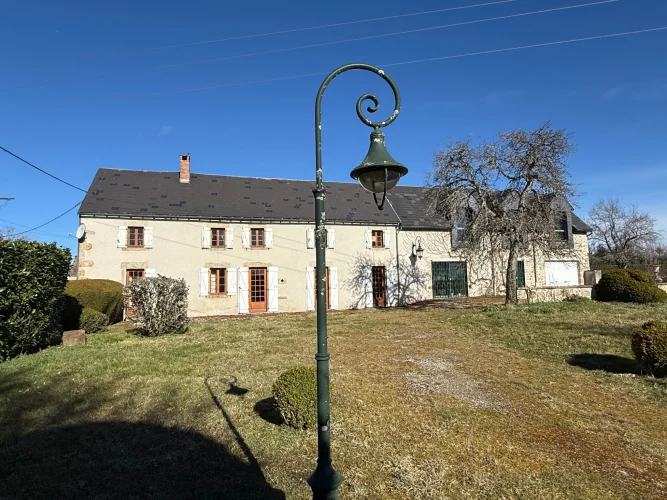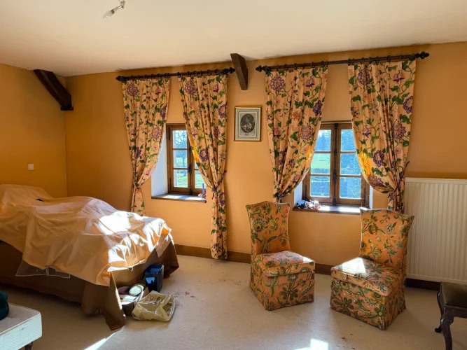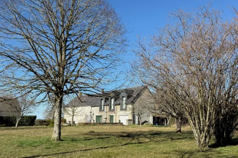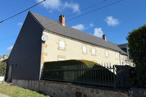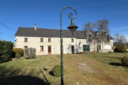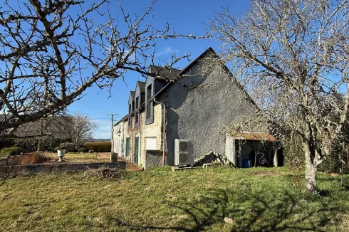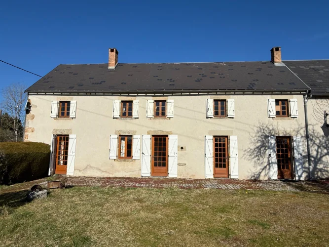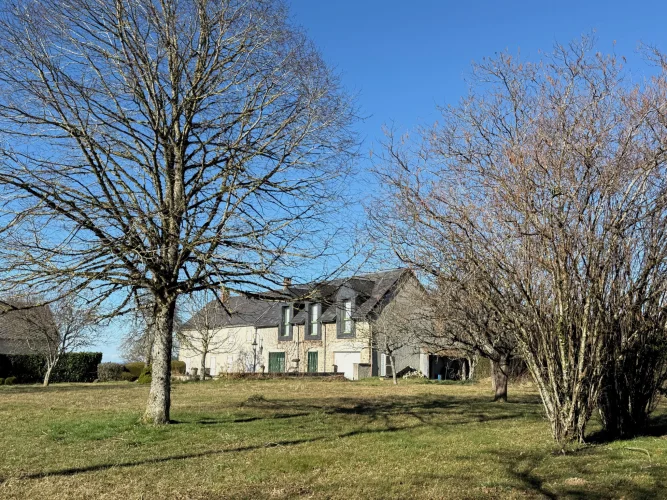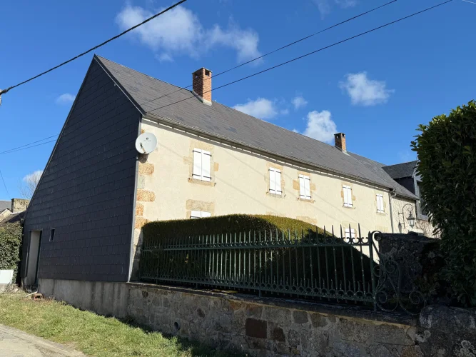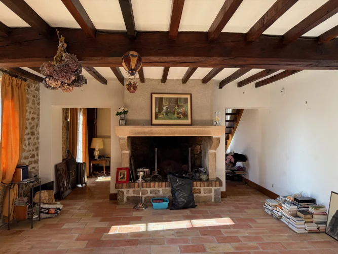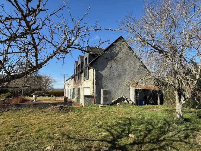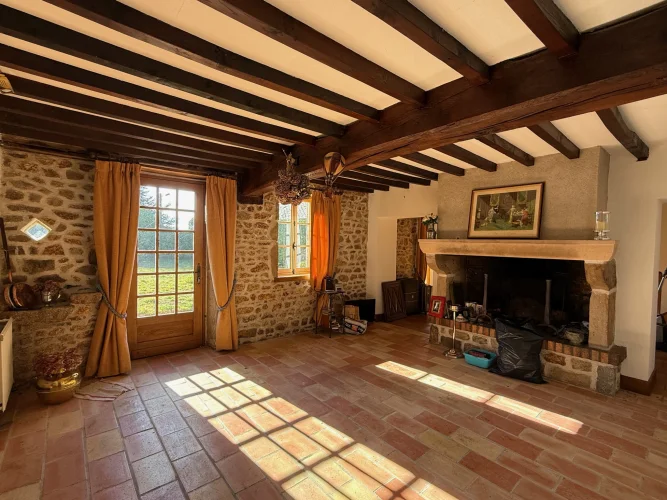 Auv 1178: Beautifully renovated longère, peaceful location, 7780m2Originally, this property was a house with a barn, and the barn has been completely converted into living space. The total interior size of the building is nearly 200m2 across two floors. In other words, there is plenty of space!The land includes a beautiful garden, a large terrace, a meadow area, and a well.Inside the house, there is a relatively small kitchen (10m2), leading to the original part of the house, which is divided into three open areas totaling 82m2: a dining area, a living room, and a library, as well as a large storage space finished in chestnut wood. Authentic elements have been preserved, such as a large fireplace, exposed beams, etc. Each area has its own oak-framed glass door (single glazing) opening onto the garden.On the left side, upstairs, there is a large landing mezzanine which could become a proper bedroom with the addition of some partitions, along with two very large bedrooms, a separate WC with a washbasin, and a somewhat dated bathroom equipped with a bathtub, shower, and washbasin.On the right, the former barn has been more recently renovated in a modern style, featuring a lot of marble and large double-glazed windows. This section includes a vast hall (33m2) with a central staircase, followed by a bedroom, a separate WC with a washbasin, and a spacious garage (24m2) housing the central heating system (oil-fired) and heat pumps. Upstairs, there is a spacious mezzanine, a very large bedroom, a separate WC with a washbasin, and a marble bathroom with a washbasin and a walk-in shower.A new wastewater system will need to be installed.This house is the last in a quiet hamlet and offers many possibilities for various projects.