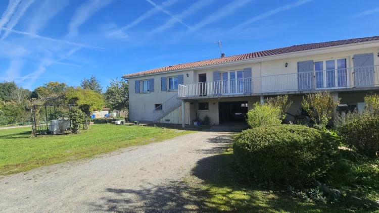Ref 1264 Located in the town of BLOND, 10 minutes by car from the nearest shops. I offer you this pavilion with a separate fitted kitchen upstairs, a bathroom, separate toilet, and a corridor which serves 3 bedrooms. We also have a magnificent living room of 78 m2, very bright and spacious which gives access to a large balcony which surrounds this room. On the ground floor, a large basement including 2 garages and a summer kitchen which gives direct access to the large 5,000m2 garden ideal for family meals. At the bottom of the plot we have a large garage ideal for storage.