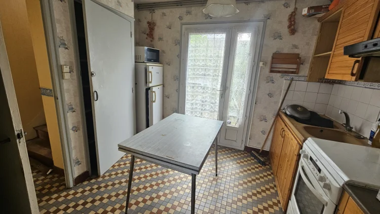 REF 1401 Just a 5-minute walk from the nearest shops, in the dynamic and welcoming town of Bellac, discover this house with great potential which combines practicality, comfort and charm. On the ground floor, you'll be greeted by a welcoming living area, featuring a kitchen opening onto a bright living room, perfect for sharing moments with family or friends. Large windows let in natural light and create a warm atmosphere. A separate toilet completes this space. Upstairs, the sleeping area consists of three bedrooms offering great layout possibilities. You'll also find a functional bathroom and a second separate toilet, ideal for the comfort of the whole family. This house is perfectly habitable as is, only decoration and refreshment work is required to bring it to your taste and reveal its full potential.