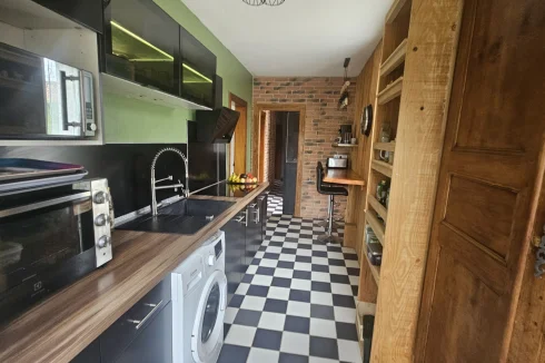 A fully renovated single-story house, comprising: A separate equipped kitchen, a bright living room with direct access to the garden, three comfortable bedrooms, a modern bathroom, and a separate toilet.