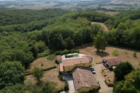 Extremely spacious property in a beautiful, tranquil setting with superb views. Set in just under 2 acres of formal gardens and woodland with superb heated swimming pool and terraces.