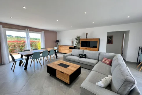 Mandate N°FRP173067 : Villa approximately 127 m2 including 4 room(s) - 3 bed-rooms - Garden : 700 m2. Built in 2016 - Equipement annex : Garden, Terrace, Garage, double vitrage, piscine, cellier, and Reversible air conditioning - chauffage : aucun - Class Energy A : 55 kWh.m2.year - More information is avaible upon request...