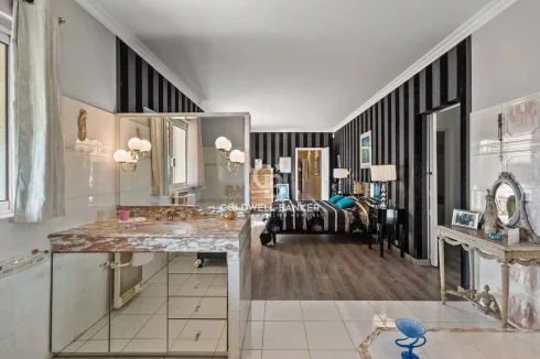 - on the ground floor: an imposing living room of 95 m2, a kitchen opening onto the pretty terrace, a master suite and a second independent suite (possibility to create a very large master suite with bedroom, bathroom, bathroom and double dressing room).