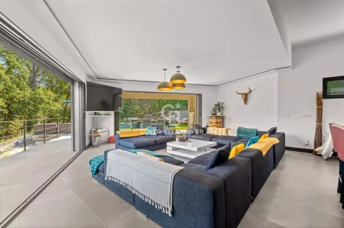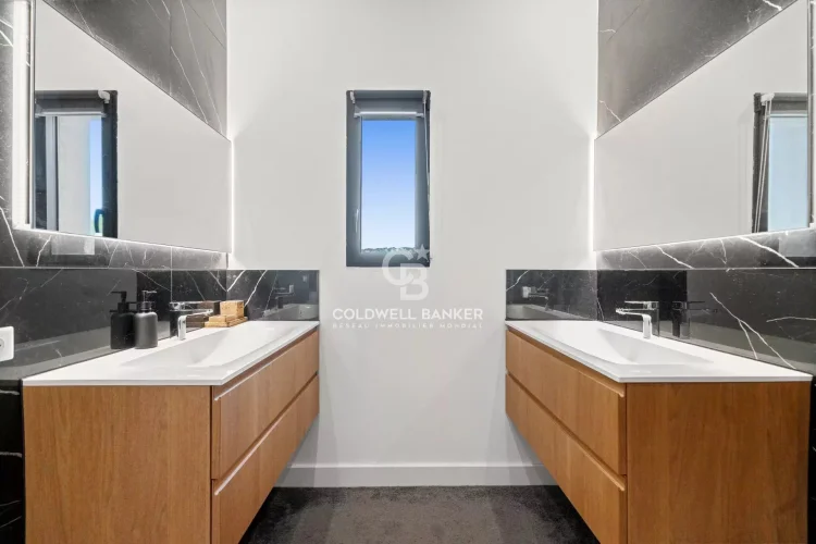 With a living area of 140 m², the house offers a spacious, light-filled living room with an open-plan kitchen, directly facing the pool. The night area includes 3 bedrooms, each with its own en-suite shower room, ensuring privacy and comfort for family and guests alike.