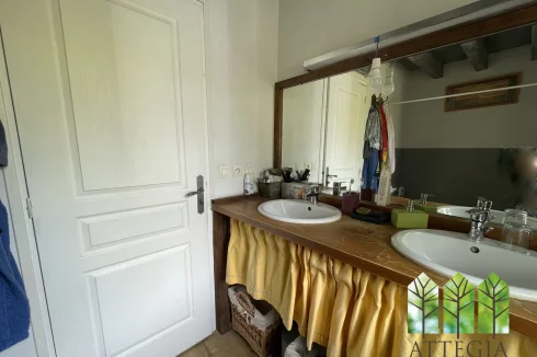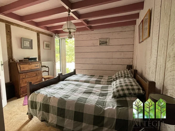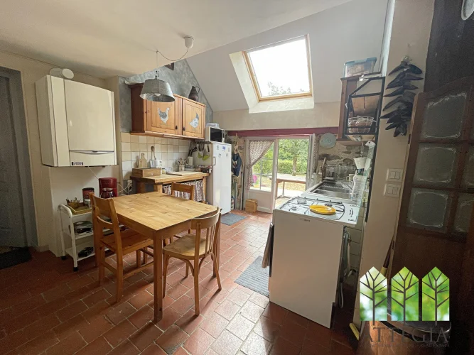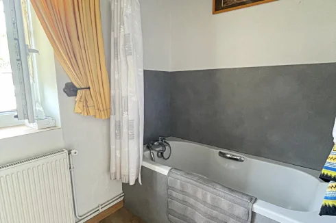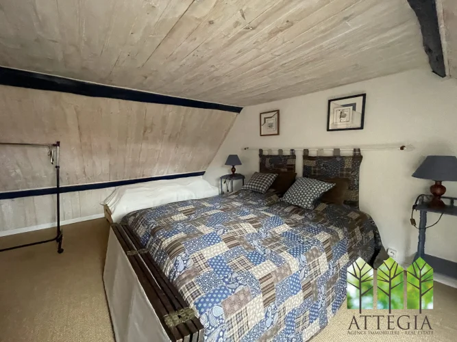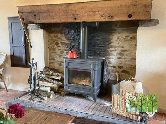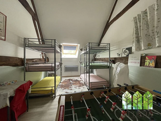 Directly opposite the main house, a beautiful stone outbuilding — a former village bakery — has been partially converted on the ground floor into a 14 m² room with a fireplace. The upper floor could be converted into a bedroom, an office in order to make another small guest accommodation.