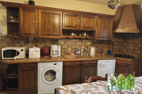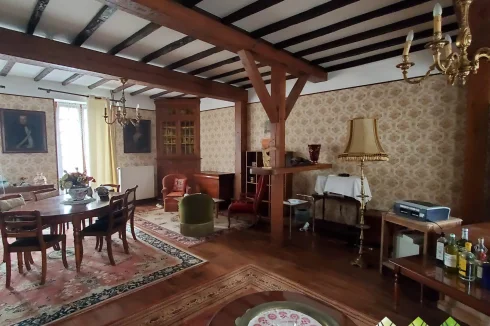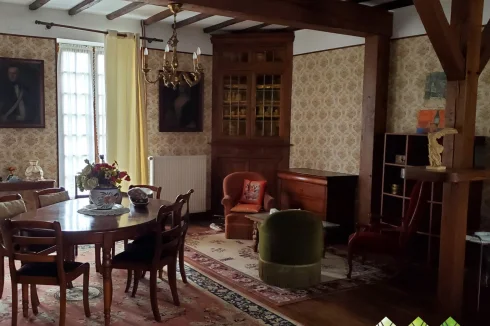 Entrance hall leading to a small guest lounge of 23 m² with an open fireplace. Large fitted and equipped kitchen/diner of 21 m² with a view of the garden. Large lounge/dining room with office/library area of 51 m², parquet flooring, exposed beams and all the charm of the old.