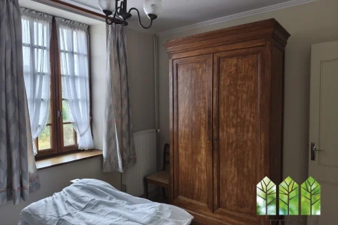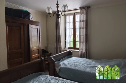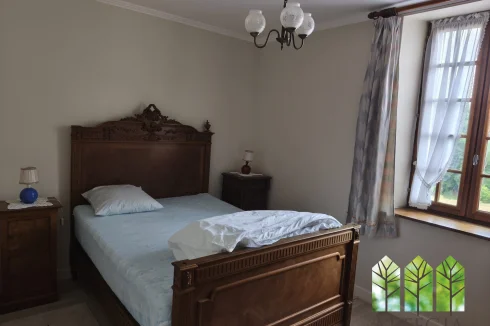 Master bedroom of 21 m² with bathroom and WC. Second bedroom of 15 m² with shower room. Study of 13 m² adjoining, giving access to a third bedroom of 15 m². Fourth bedroom of 15 m². Double landing leading to the convertible attic covering the entire house and the gîte, accessible via a retractable ladder.