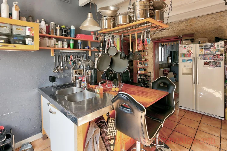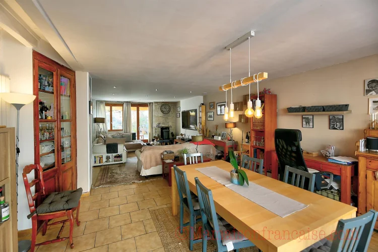 This 5bed/2bath stone house is found in the heart of a riverside town with shops, school and medical centre. Ecological heating via a pellet stove with back boiler for the central heating system and thermodynamic water heater. Lovely courtyard with covered terrace, large outbuilding, hangar and garden with above ground pool. Internet via fibre.