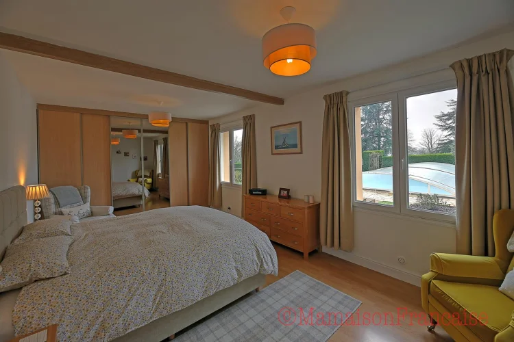 An immaculate bungalow near to Parthenay with a covered swimming pool, beautiful gardens and three surrounding fields for animals, offering double glazing, spacious rooms and 4beds/2bath.
