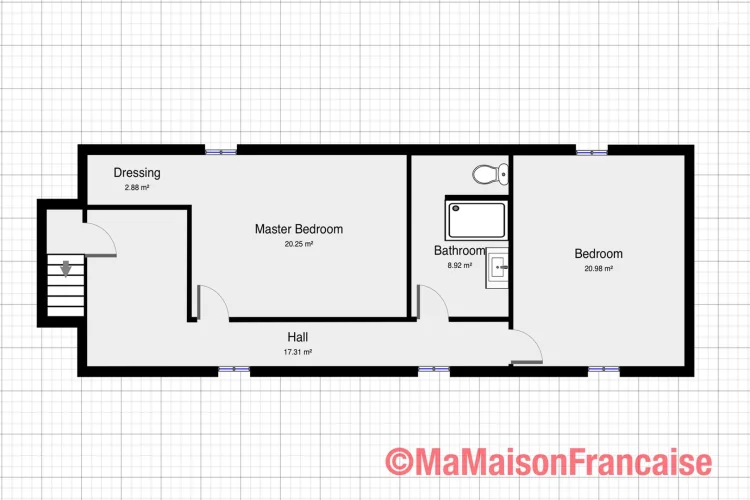 On the first floor is an office area and landing area with 2 windows to the front. Bedroom with windows front and rear and beams. Shower room with vanity sink, WC and built in storage. Bedroom with window to the rear and dressing area.