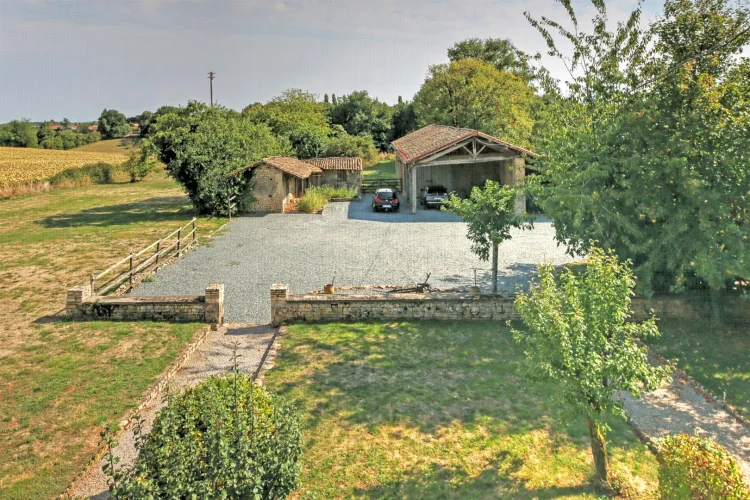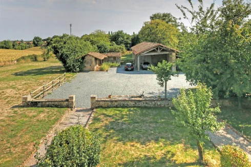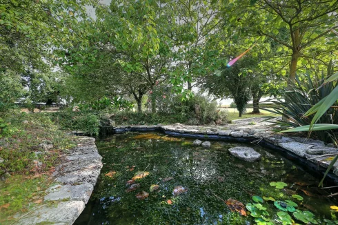 The gardens surround the house on all sides with open views to the countryside beyond, the front garden features a lovely fish pond with terrace for dining, there is a round heated swimming pool to the side of the property with a terrace around. The gardens to the rear are more formal and have many fruit trees. The land extends to the back of the property and totals 1.3 hectares including some woodland.