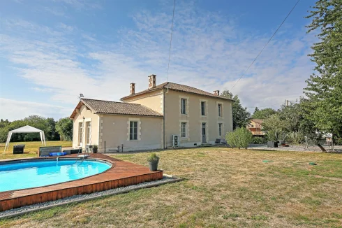 This beautiful maison de maître has been tastefully renovated and offers spacious accommodation, over 2 floors with large windows that are double glazed, energy efficient central heating system powered by an air source heat pump, extensive gardens including a heated swimming pool, a lovely fish pond and land extending to 1.3 hectares.