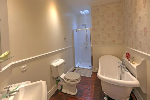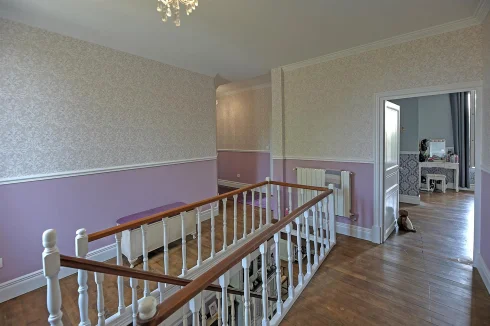 The generous landing area has a wooden floor, built in storage cupboards and window to the front, the 5 double bedrooms lead off the landing. Master bedroom has a wooden floor, window to the rear, marble fireplace and en-suite shower room. Further en-suite bedroom with window to the rear, wood floor. Third bedroom with window to the front, wood floor, dressing room and nook with a sink. Bedroom 4 has a window to the front, and wooden floor. Bedroom 5 has a wooden floor, window to the rear and built in storage. Family bathroom with wooden floor, freestanding slipper bath, separate shower, sink, wc and towel rail.