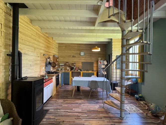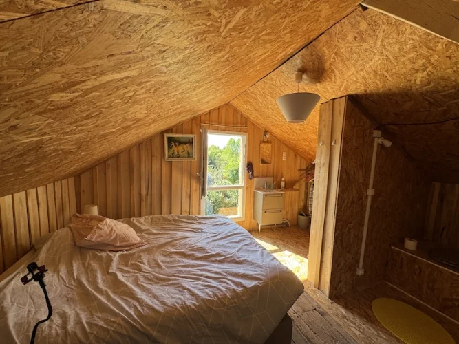 Unique in its style the house would suit a family, there is a kitchen, dining room, lounge, 3 bedrooms all with mezzanine areas, family bathroom and a compost WC, a spiral staircase leads to an attic bedroom with hand basin and compost toilet, there is another loft room, ideal as a child’s bedroom or a playroom.