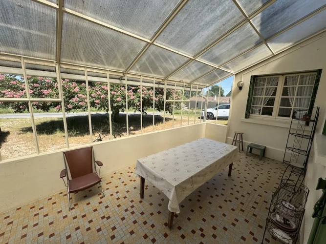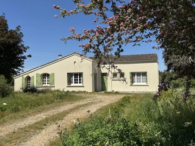 Detached house with garden 3000m2, situated in s quiet hamlet between Montguyon and Neuvicq in the Charente Maritime. This well priced house has an entrance hall, lounge, dining room, kitchen with fireplace and a utility room. There are 3 bedrooms, shower room and WC. At the rear of the house is a summer room/veranda. There is plenty of parking and a small garage. The house is 102m2 with a driveway to the front and the back. A pretty house with a mature garden, ideal for a veggie patch and plenty of room for a pool. The land is building land so if someone wanted to build a garage or even another house it would be possible (permission would need to be applied for). Just a 5-minute drive to Montguyon where you have shops, restaurants and a twice weekly market, the bathing lake Beauvallon is a short drive.