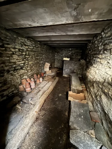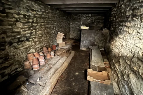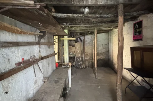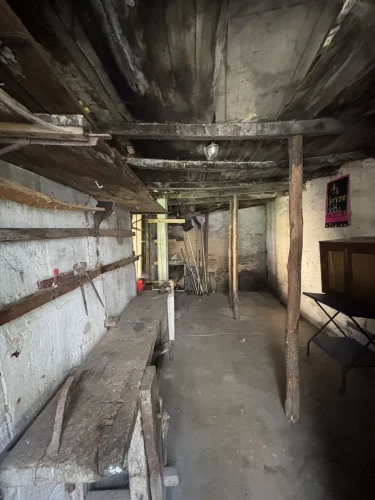 Outside: a 200m² plot of land with a woodshed, a workshop, and a cellar.