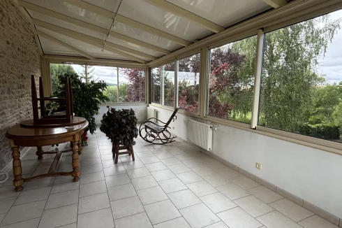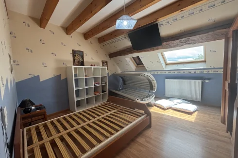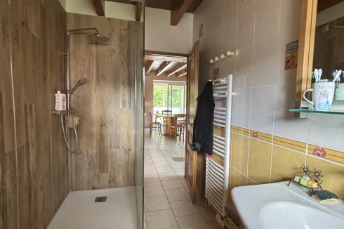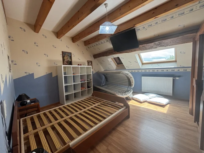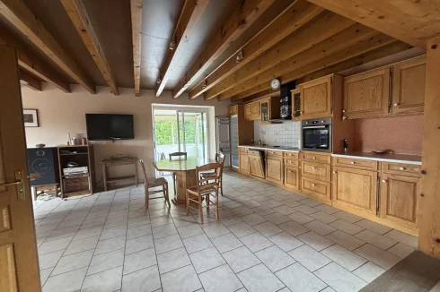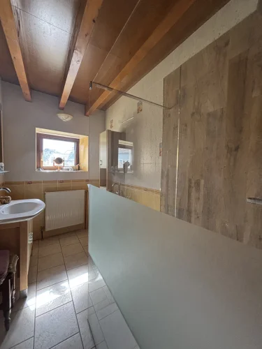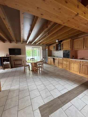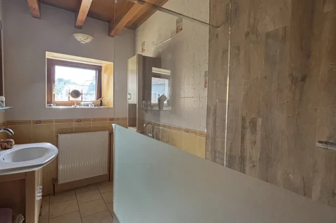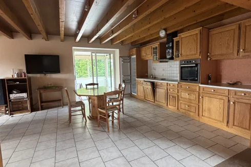 The second house, currently rented, includes: an open-plan kitchen of 22m² with an insert, a living room with a fireplace of 20.48m², a washing machine area;