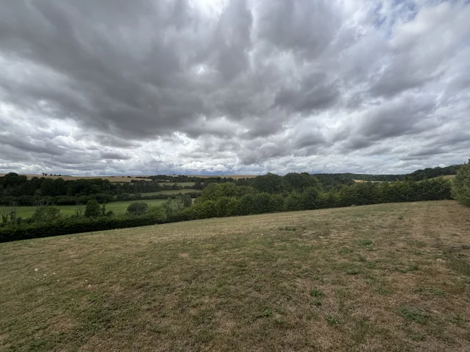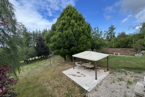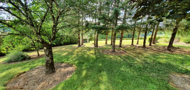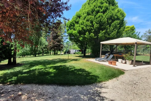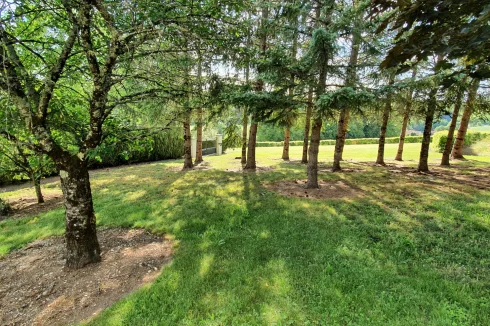 Courtyard in front and land behind the house with fruit trees and fir trees, unoverlooked views of the plain, a wonderful sense of freedom.