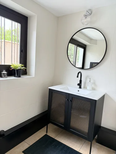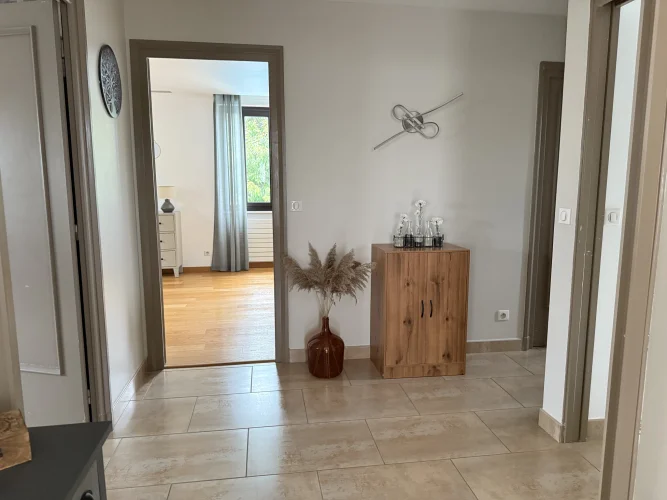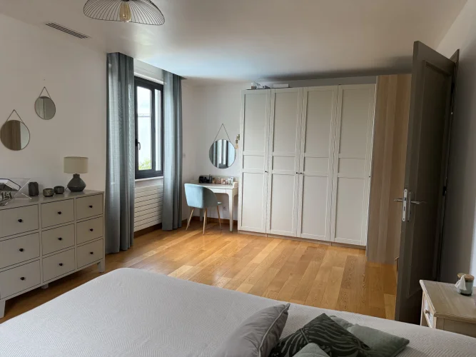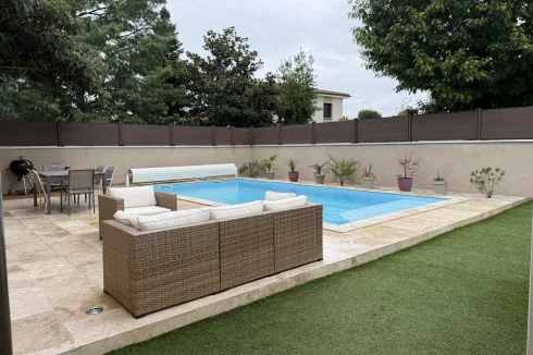 220 m² of living space, a very large courtyard to accommodate several cars without parking problems, a rear garden with a swimming pool, and secure motorized shutters.