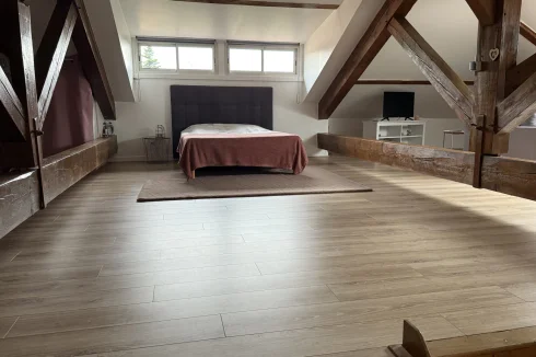 On the first floor, a kitchen and a bright living room, two bedrooms, including a very large modular bedroom (possibility of creating three bedrooms). The attic offers ample space and spaciousness, with the attic fully insulated.