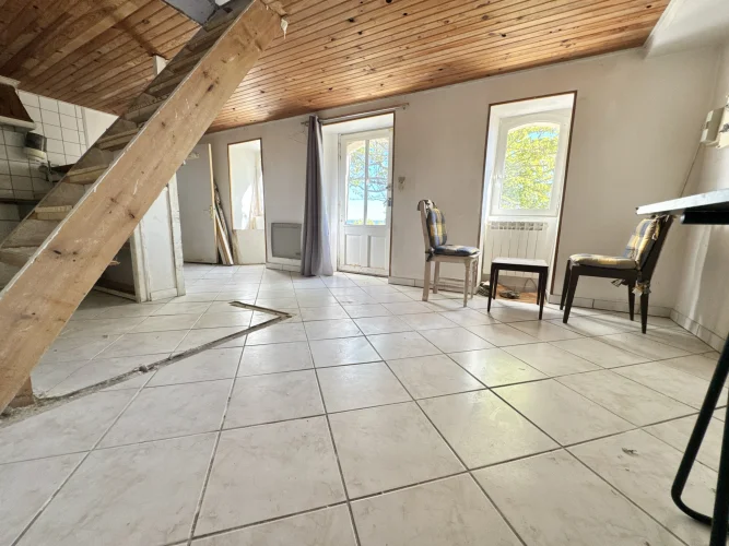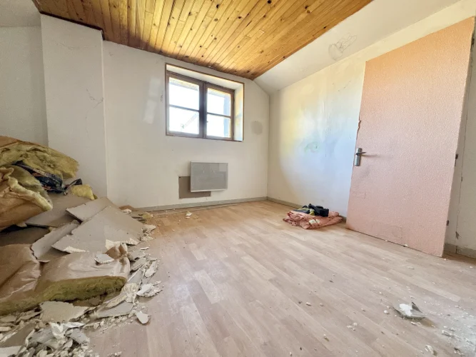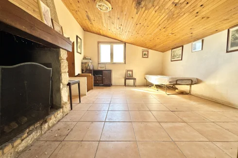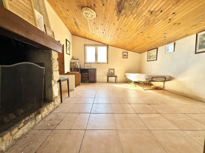 In the back living room with fireplace of 14 m2, a large room of 20 m2 on the ground floor which could be a first bedroom or an office with adjoining reserve of 4.85 m2.