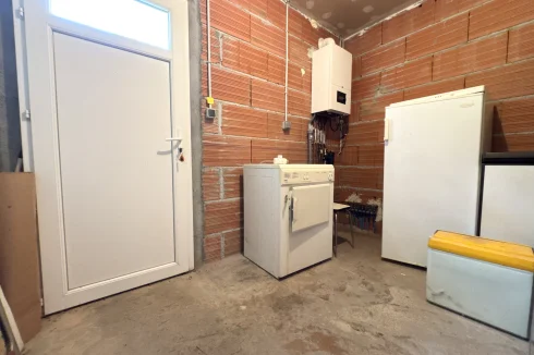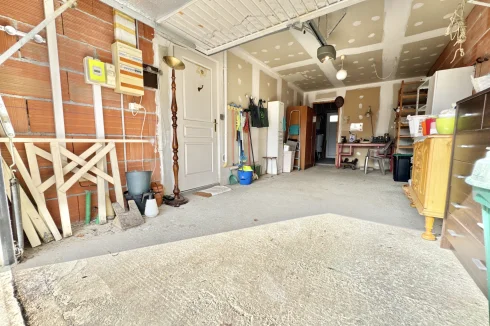 Comprising a direct entrance to an air-conditioned living room of 35.05 m2, a separate fully equipped kitchen of 12.03 m2 opening onto a large garage of 22.58 m2 with an electric door and a laundry room of 8.60 m2 opening onto the garden.