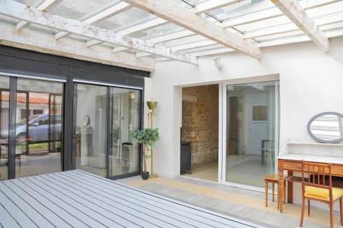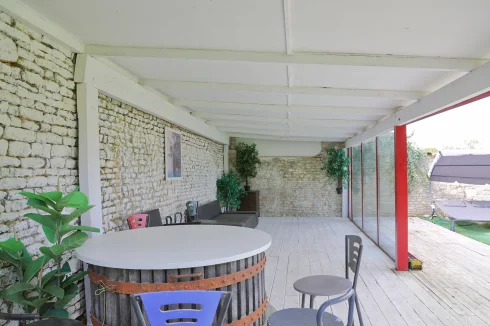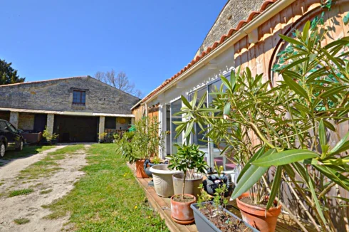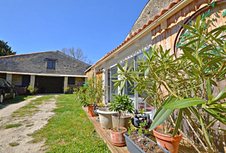 In Benon, a small village located in Charente-Maritime less than 30 minutes from LA ROCHELLE, quality real estate complex, a stone construction from the 1940s. Property with a main house on the property which offers on the RDV a pretty and spacious equipped and fitted kitchen, a large living room/lounge, a glazed veranda at the entrance of the house, a hallway with staircase to the upper floor. Upper floor offering two beautiful parental suites of beautiful volumes. The origin of the property takes us back in history. On the property you have a small independent studio overlooking the entrance courtyard, you also have a second independent studio as well as another independent bedroom. A beautiful barn of 63 m2 on the ground on a gable height of 6.50 meters (which evokes the possibility of creating a floor for the creation of an additional dwelling). Outside there is a courtyard of approximately 127 m2 and an enclosed and wooded garden of approximately 464 m2 with a covered patio on slab, equipped with water, electricity, lifting pump and all drainage) which would be interesting for the creation of additional accommodation. A small annex exists at the bottom of the garden which is currently an independent tiled bedroom and with electricity. PLEASE NOTE the land is suitable for a swimming pool, or even building. If you are looking for a property complex for a rental investment, guest rooms, gites, creation of a gourmet restaurant and gites site less than half an hour from La Rochelle and the Marais Poitevin, this property should please you if your projects are based on land development, rental, professional, thanks to the multiple possibilities of creation. The property is located on a plot enclosed by stone walls, a very welcoming and peaceful place to live in a corner of Charente-Maritime where life is good all year round. The asking price is €1,000,000, including agency fees, payable by the seller. Property tax should be around €1,300/year. This fully renovated house has a decent energy performance rating. Are you interested in what this property offers? Contact me at for more information and to arrange a viewing. Website: