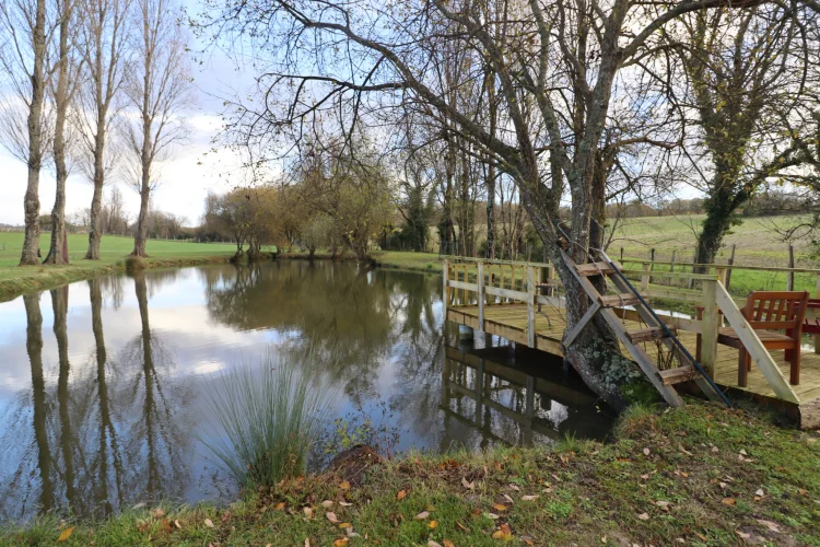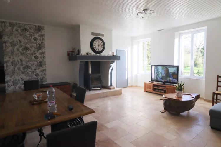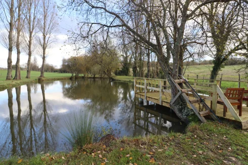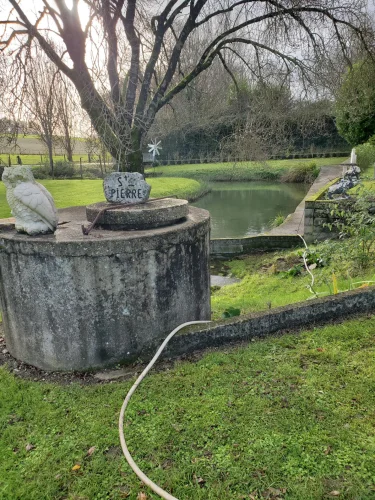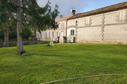 South Charente-Maritime, near Mirambeau, forty-five minutes from Bordeaux and the beaches, Charentaise property on one and a half hectares with outbuilding, guest house and pond. This old 'Charentaise' type property has a wooded park of fifteen thousand square meters in the middle of which is a beautiful pond, fed by a pretty stream, a favorite place for migratory ducks. An enchanting setting with its drinking water source which flows towards a stone reserve, kingdom of water lilies, which you will admire from your sunny windows. This stone farmhouse, completely renovated, has on the ground floor, a very spacious entrance with double exposure, a living room with fireplace and wood stove, a very large open kitchen fitted and equipped with central island, a very large master suite including dressing room, shower and toilet, a second bedroom of 18 m2 and separate toilet. Upstairs, three large bedrooms, with high ceilings and large south-facing windows, a large shower room and separate toilet, served by a spacious hallway. Numerous outbuildings adjoin this house, garages, cellars, including one with a very high ceiling with magnificent exposed beams supporting the roof in perfect condition, and a very high door that will accommodate any camper van and this outbuilding will be a paradise for a collector of vintage cars. At the rear of the house, a little separate, is the caretaker's house which includes a bedroom, a living room, a shower room, toilet and beautiful working bread oven. Very recently renovated with quality materials mixing tradition and modernism. It has two air-to-air heat pumps. It is an idyllic place, very quiet which will allow you to rediscover the true values of the countryside. You can grow your own vegetables in the large vegetable garden with its greenhouse, and why not consider keeping a few chickens, a donkey, or swans? For remote working, Bordeaux is nearby, and for pleasure, the beaches of Meschers are forty minutes away. See you soon. You'll be delighted by a visit.