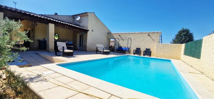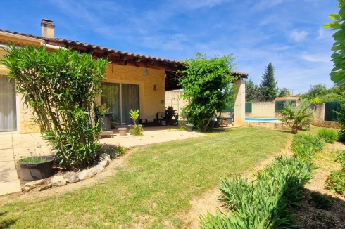 Its fully fenced and beautifully planted exterior offers several relaxation areas to fully enjoy sunny days: its 8x5 m swimming pool with paved decks, its beautiful south-facing terrace, and its green spaces.