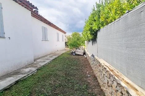 Draguignan, a quiet residential neighborhood in a cul-de-sac, boasts a beautiful, recently built 2015, 115m² single-story villa with a terrace, garage, and parking space, all on a 675m² plot.