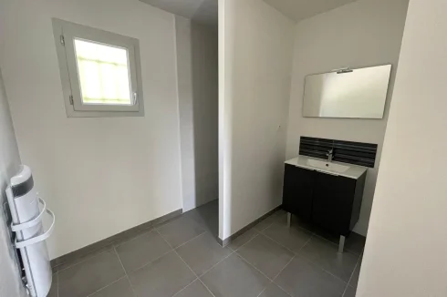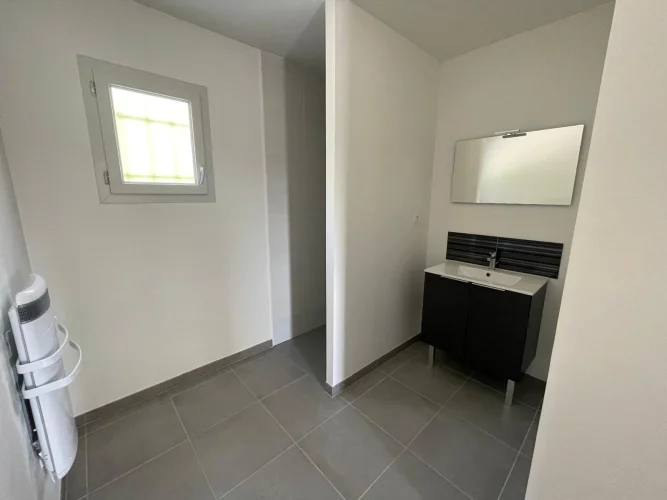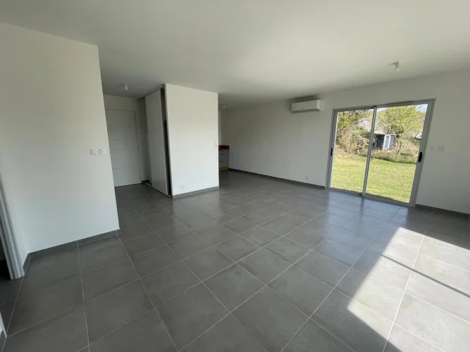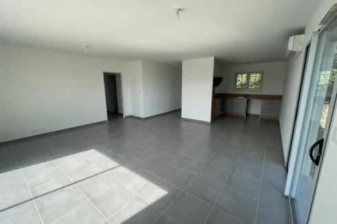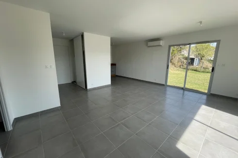 It features a large, bright living room with an open, fully equipped kitchen. The entire property is air-conditioned thanks to a reversible air conditioning system, ensuring comfort in all seasons.